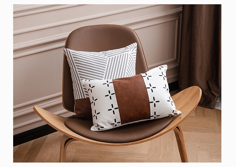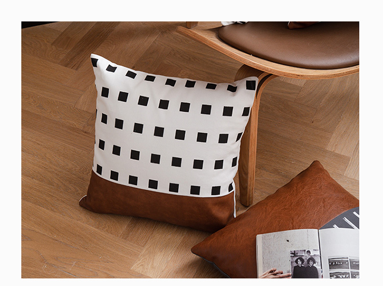 (总)美茉家居跨境电商爆款皮革帆布拼接抱枕黑白印花可拆洗靠垫,更甚,留白,有物,长物