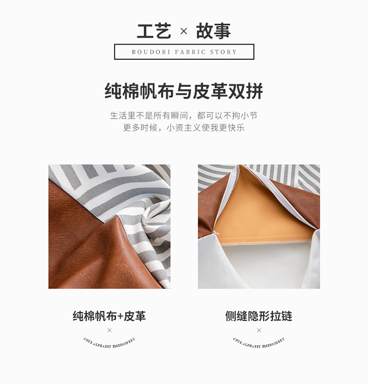 商品名称:美茉家居 2020新款皮革帆布双拼系列抱枕 灰直条