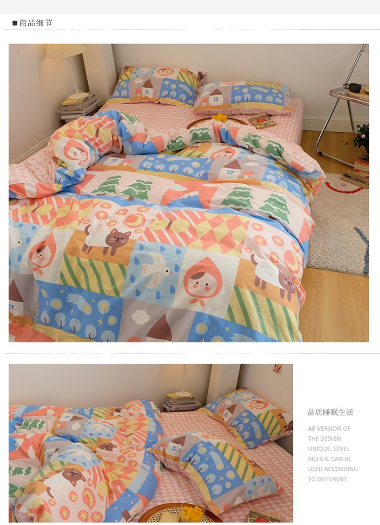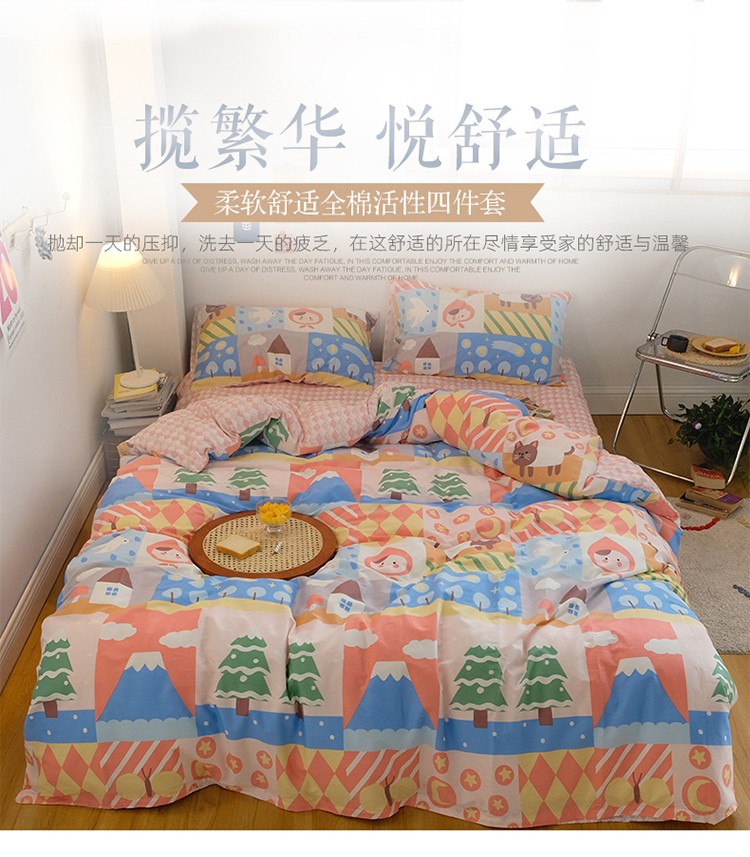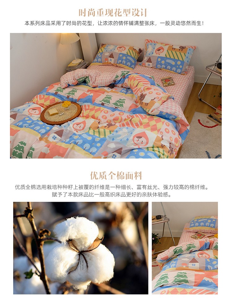 (总)窝米 2020春夏新品全棉13372四件套小波西风系列,草莓酱,木槿,小花花,小尤里