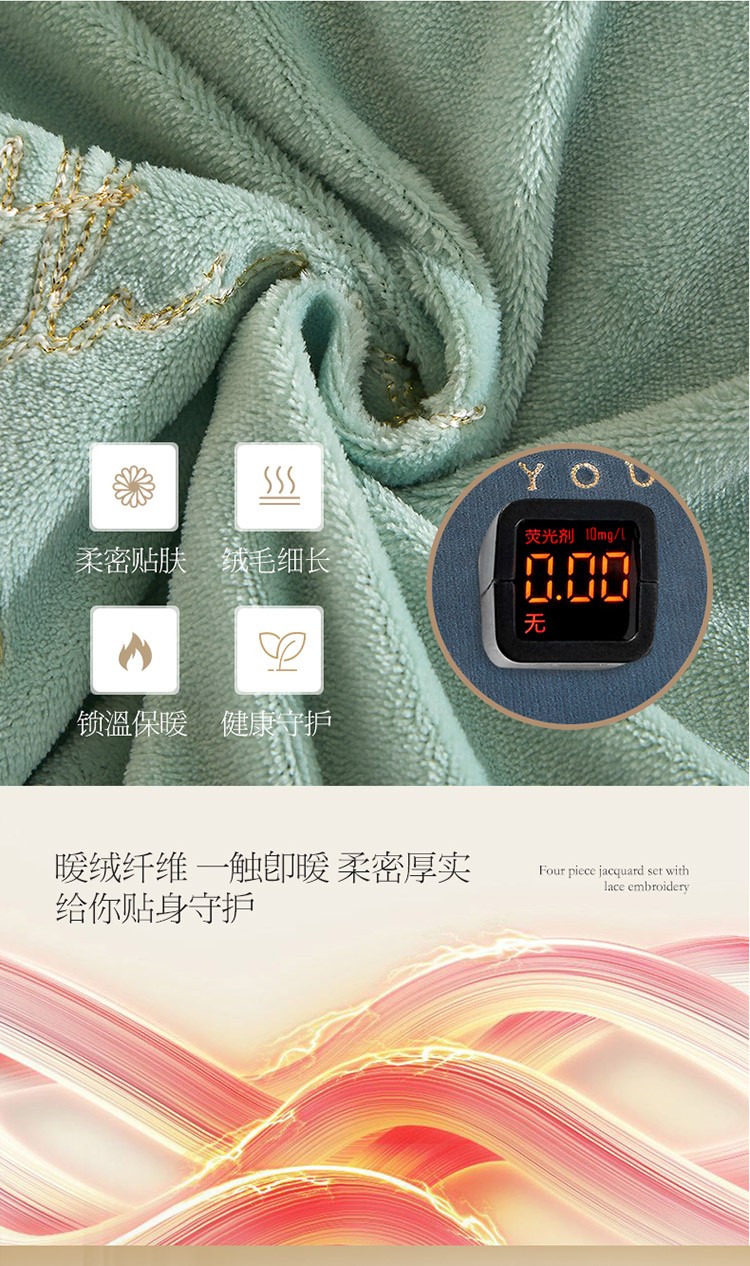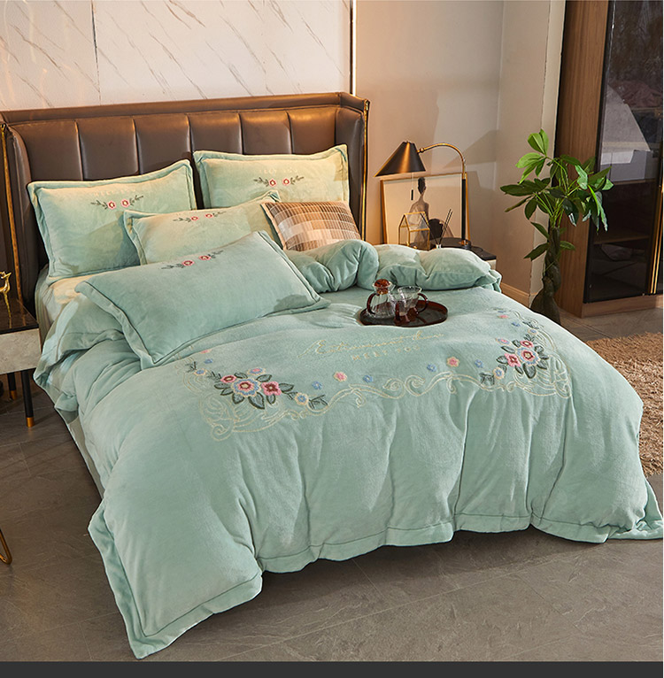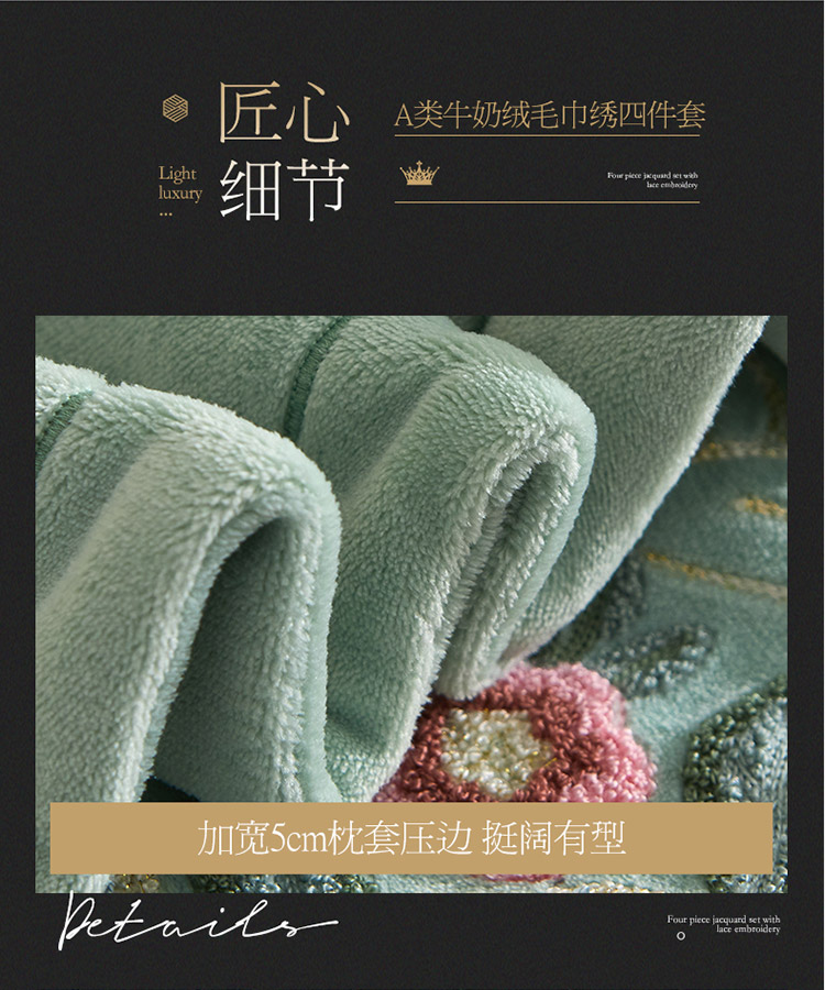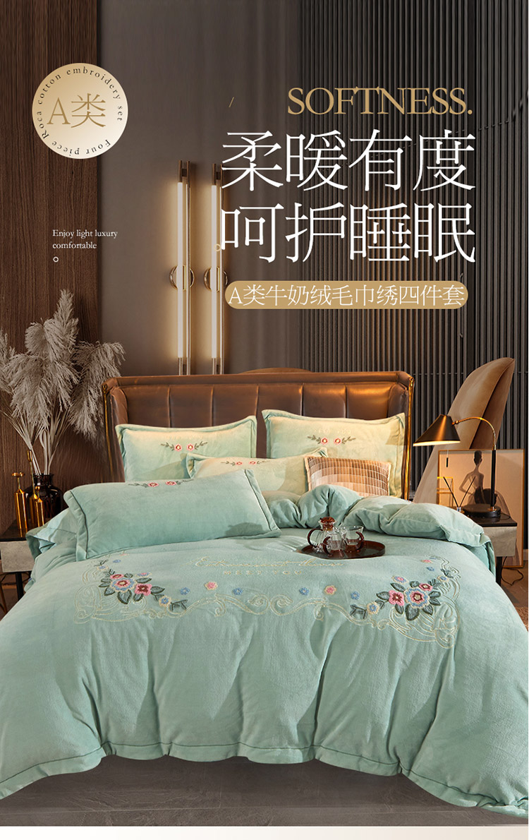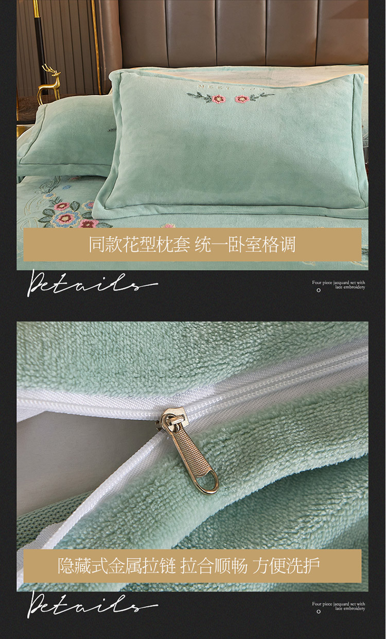 2024新款220克加厚牛奶绒一字绣四件套 前程似锦-浅绿