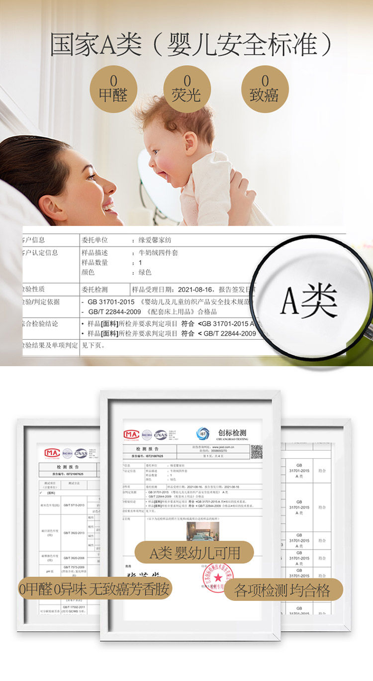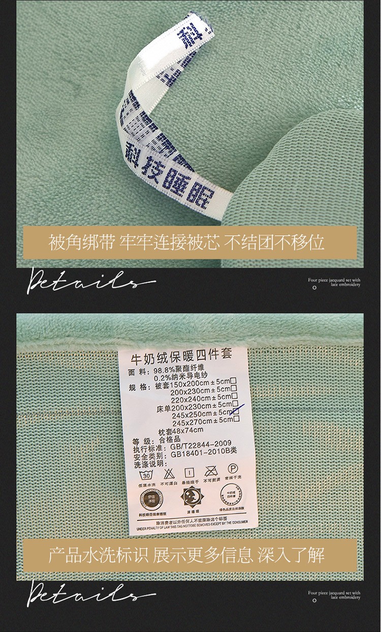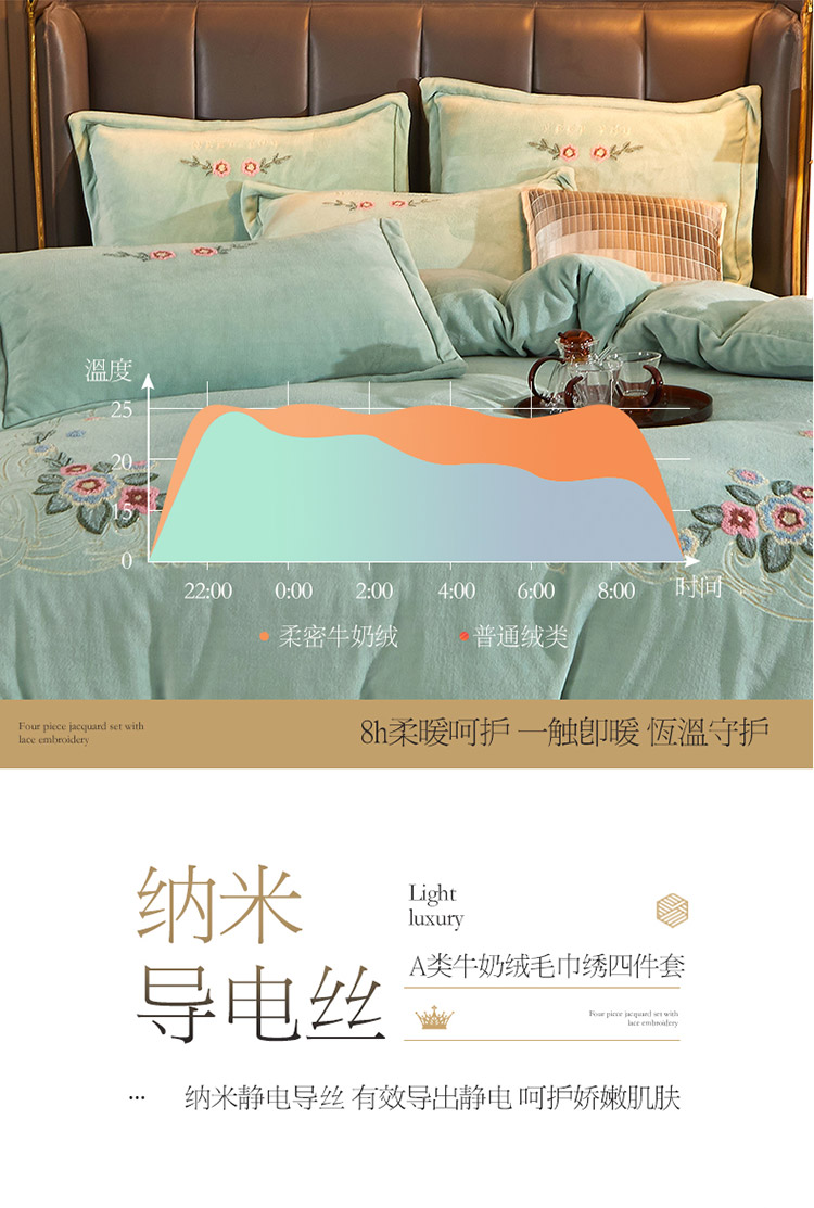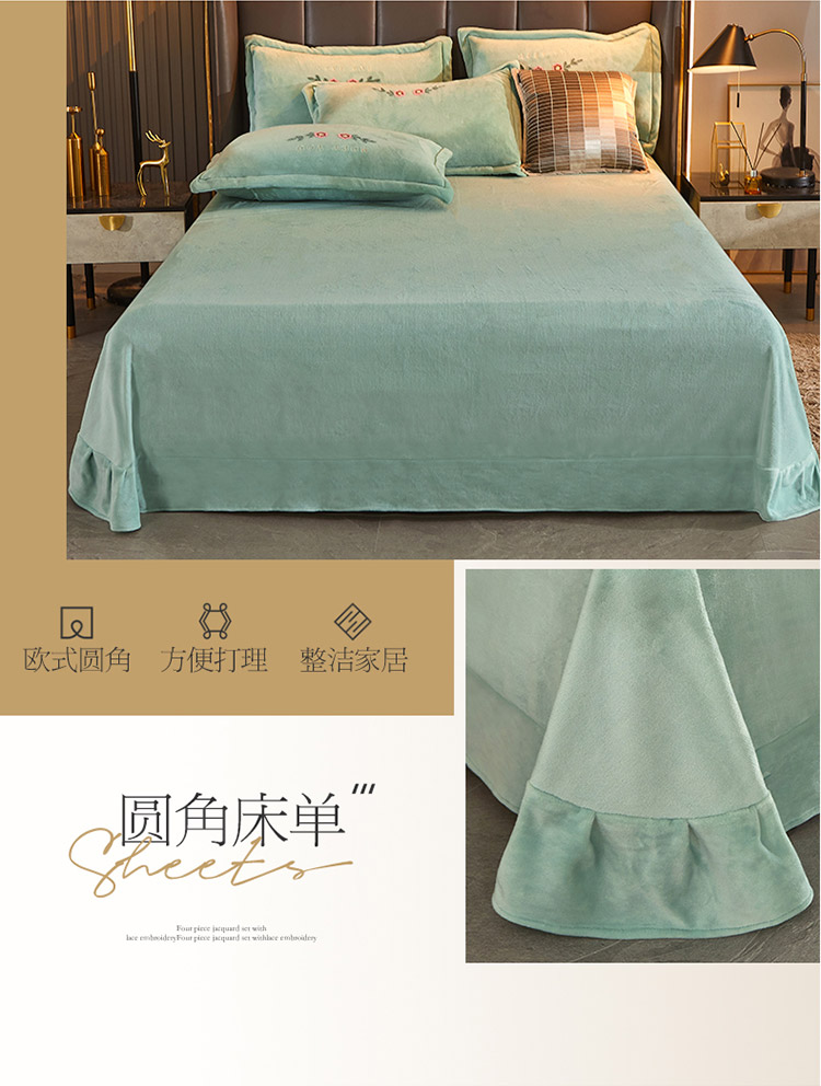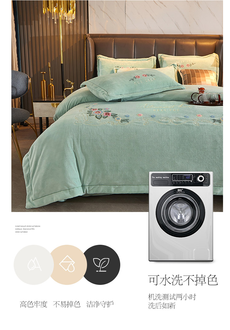 商品名称:2024新款220克加厚牛奶绒一字绣四件套 前程似锦-浅绿