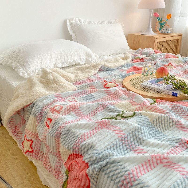 商品名称:顾里 新款ins网红少女心温暖牌魔法牛奶绒毛毯 冰淇淋蜜桃