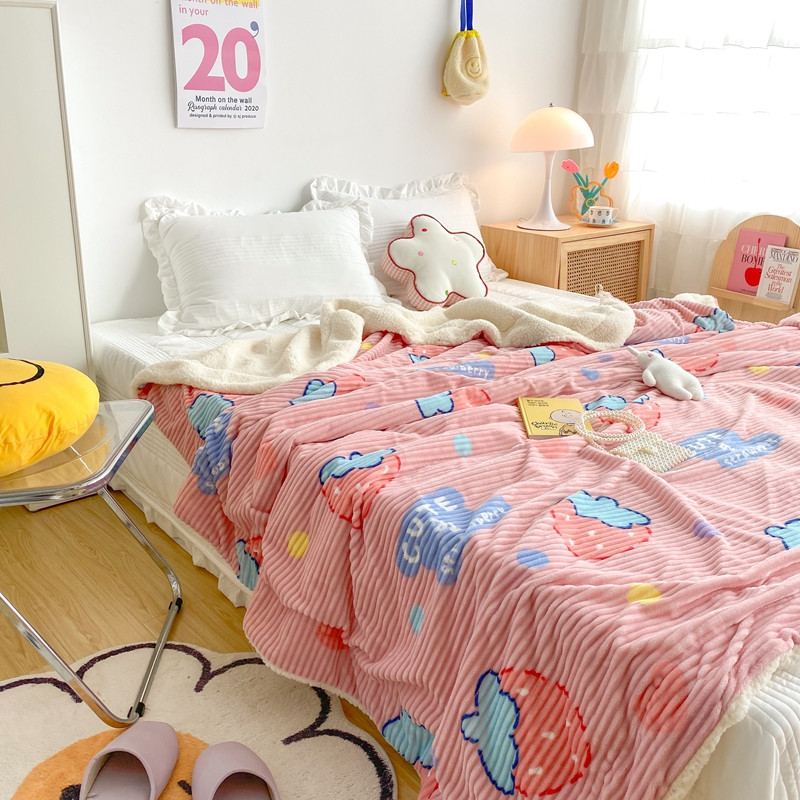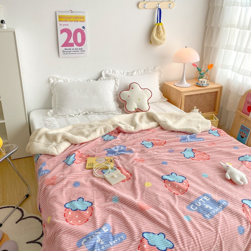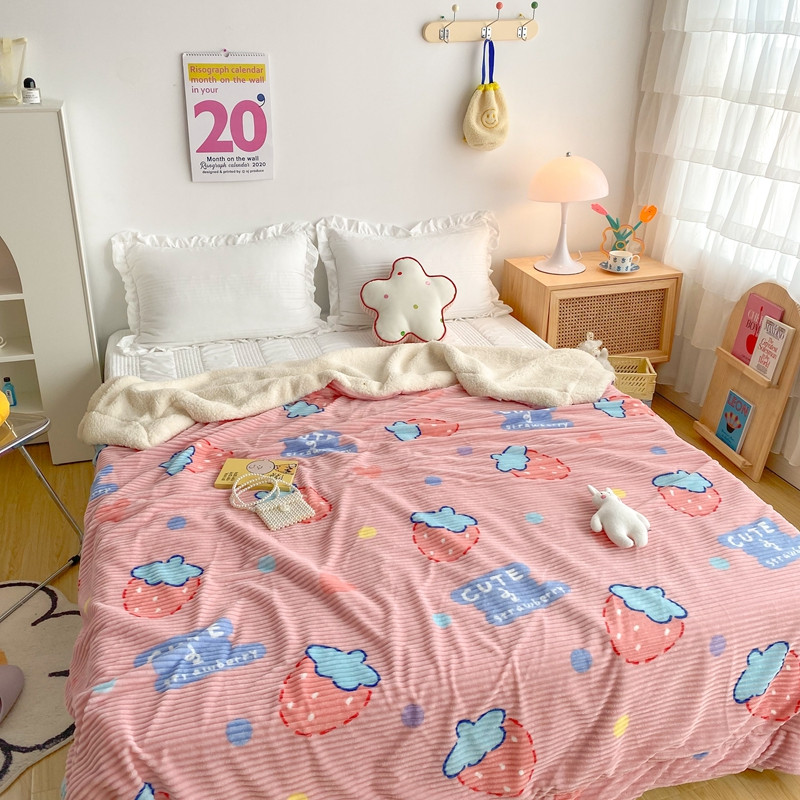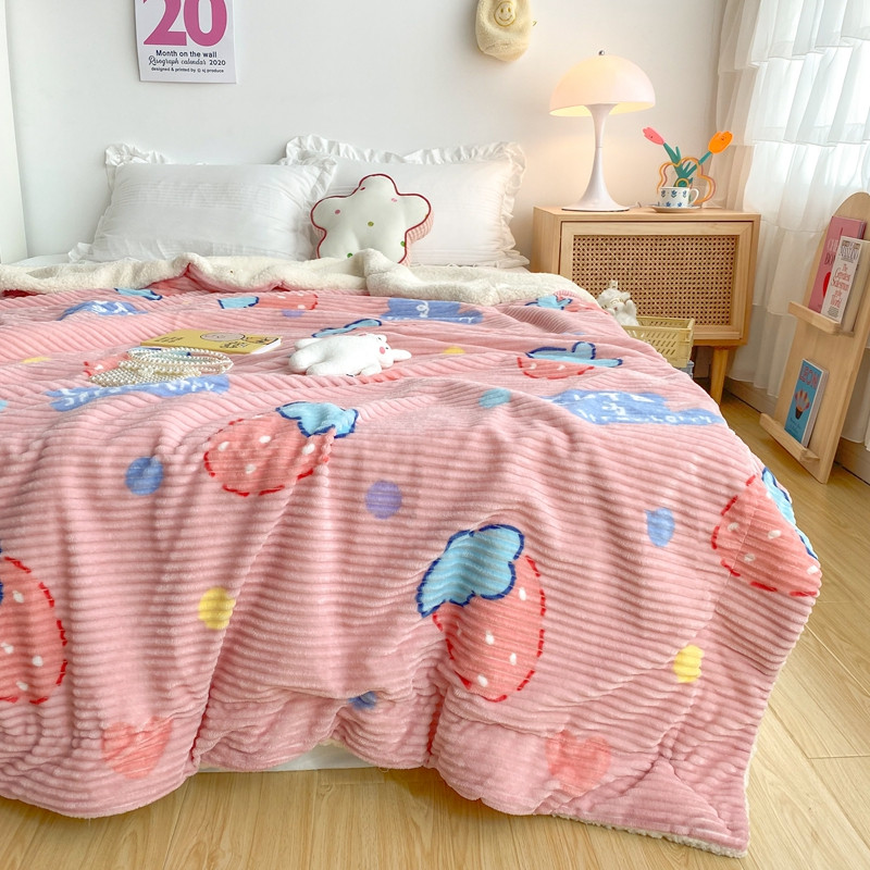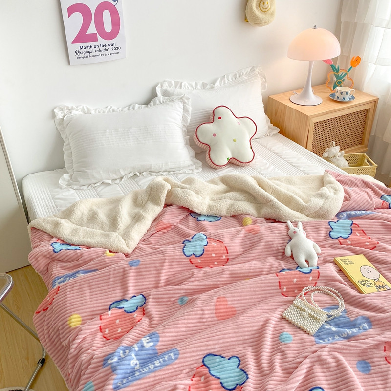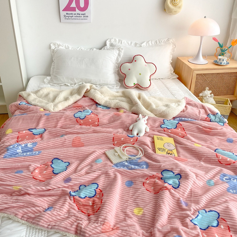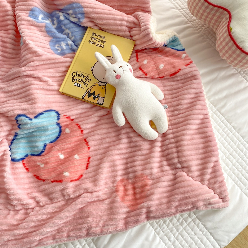 顾里 新款ins网红少女心温暖牌魔法牛奶绒毛毯 甜心草莓