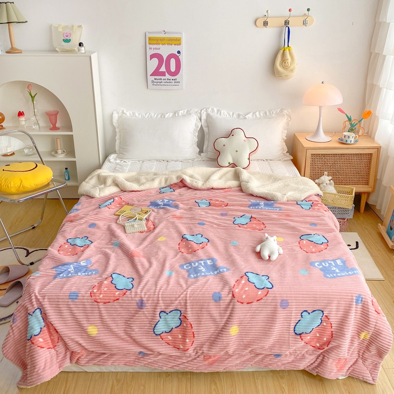 商品名称:顾里 新款ins网红少女心温暖牌魔法牛奶绒毛毯 甜心草莓