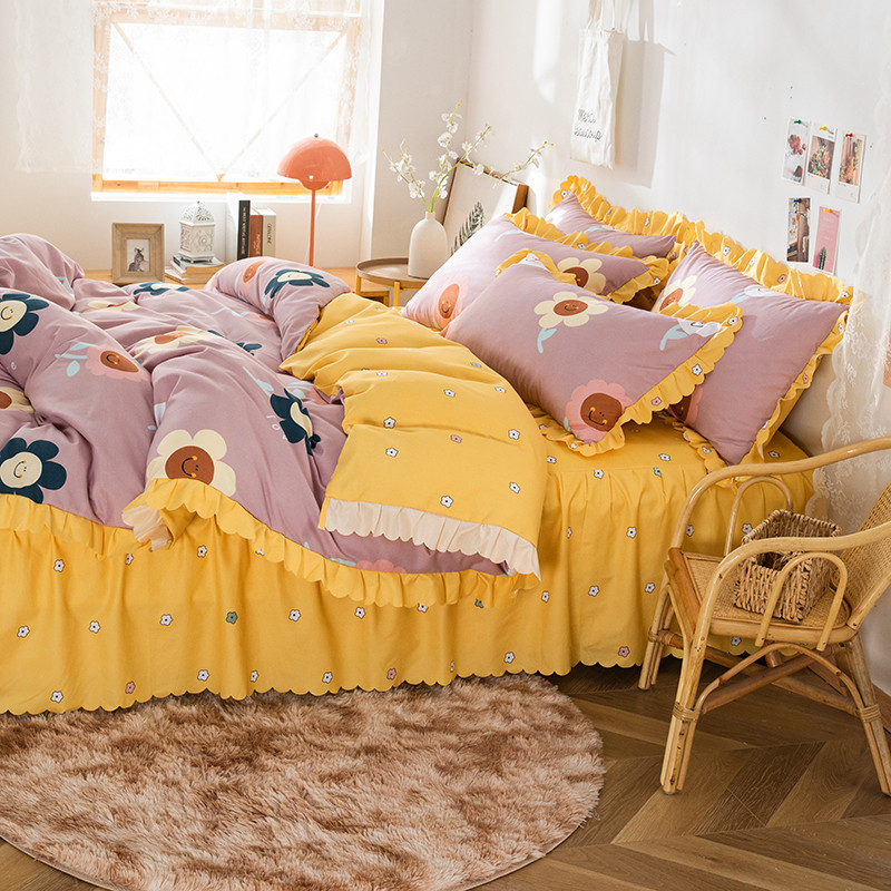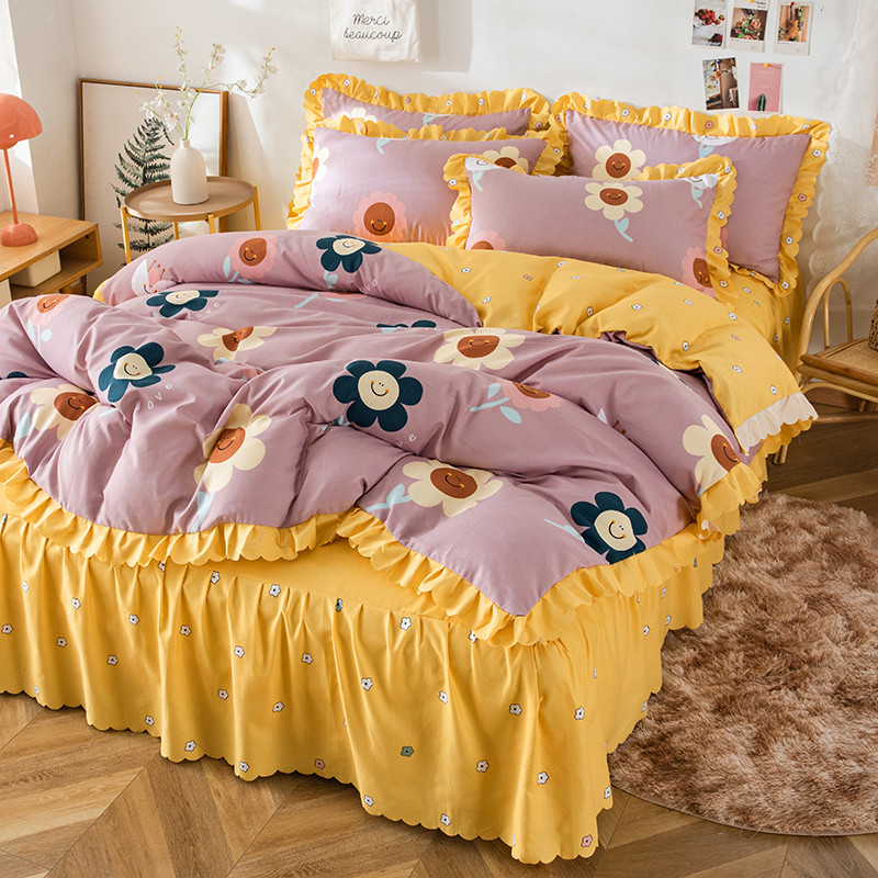 商品名称:纽缦 2020新款加厚磨毛床裙款四件套 楚楚花颜豆沙