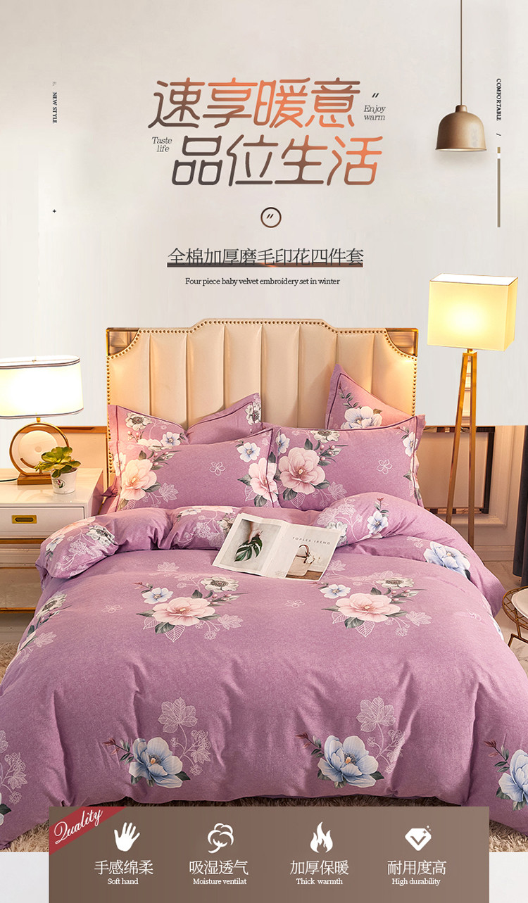 当前位置: 91家纺网 > 商品网购 > 床品套件 > 四件套 > 普通磨毛四件套 > 雲归梦 2020新款全棉加厚磨毛四件套 花枝曼妙-粉