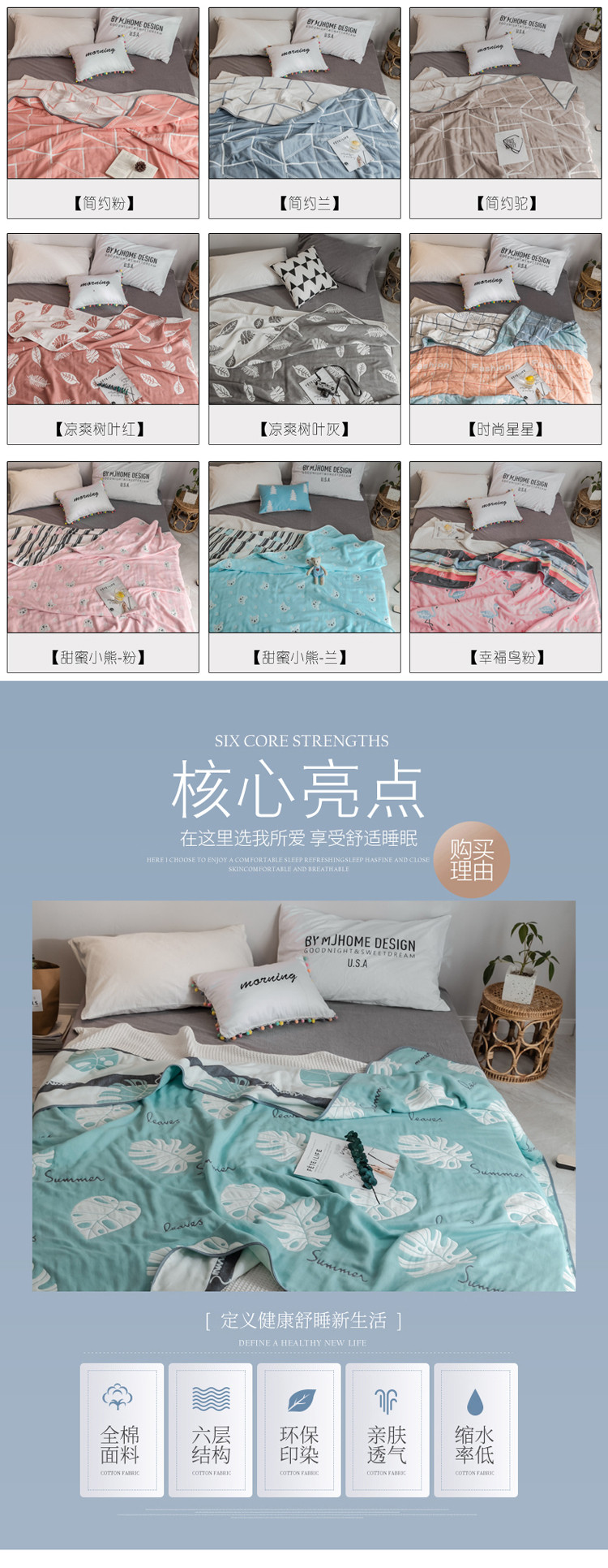 (总)朴尔家纺-毛巾被 2026新款彩棉云柔棉三层纱布毛巾被,组合图仅做展示不可下单,花自盛开,物语花聚,幸运鹿,熊猫派对,绚烂繁花,银杏知秋,郁金香来