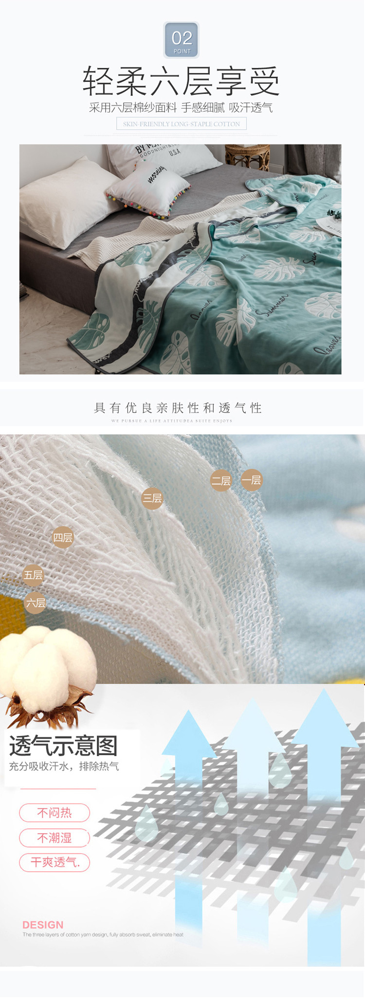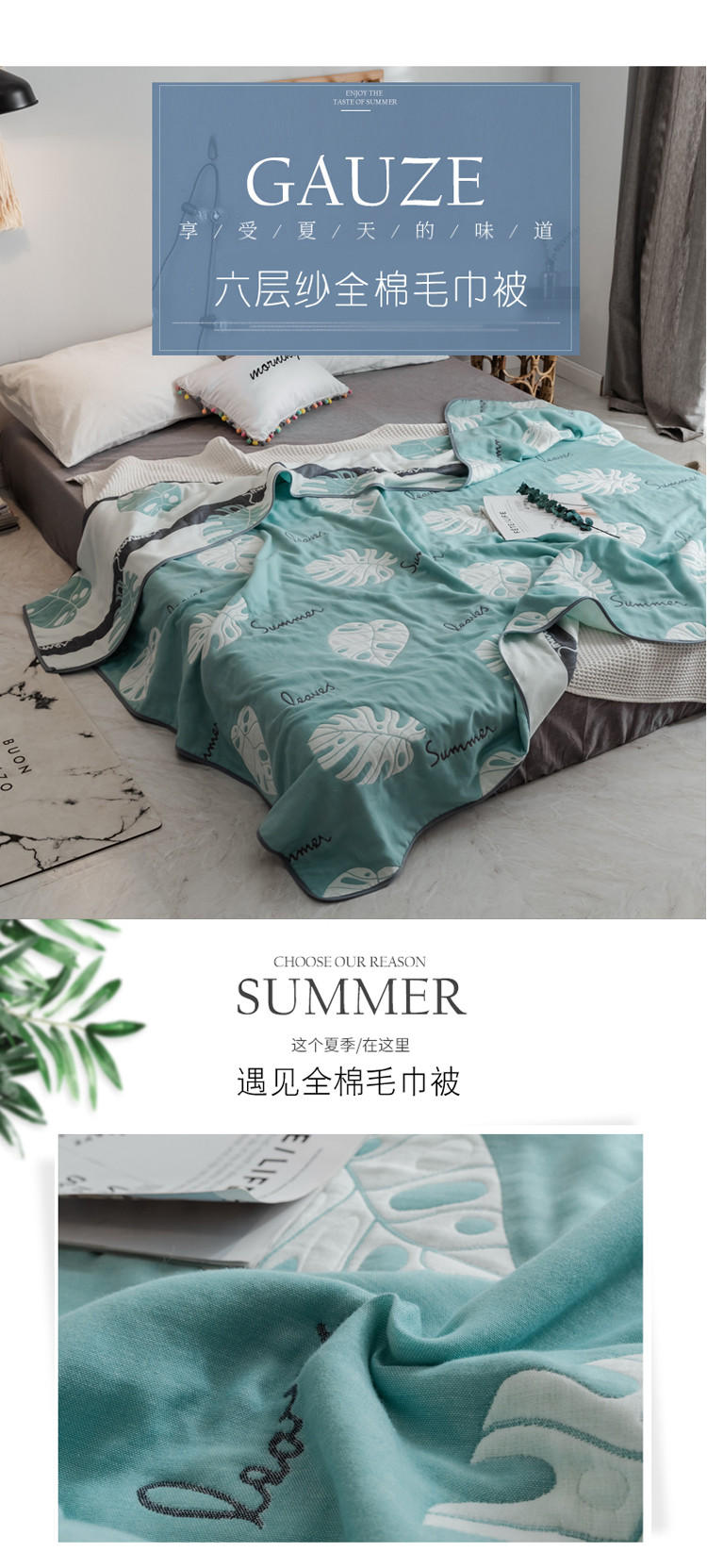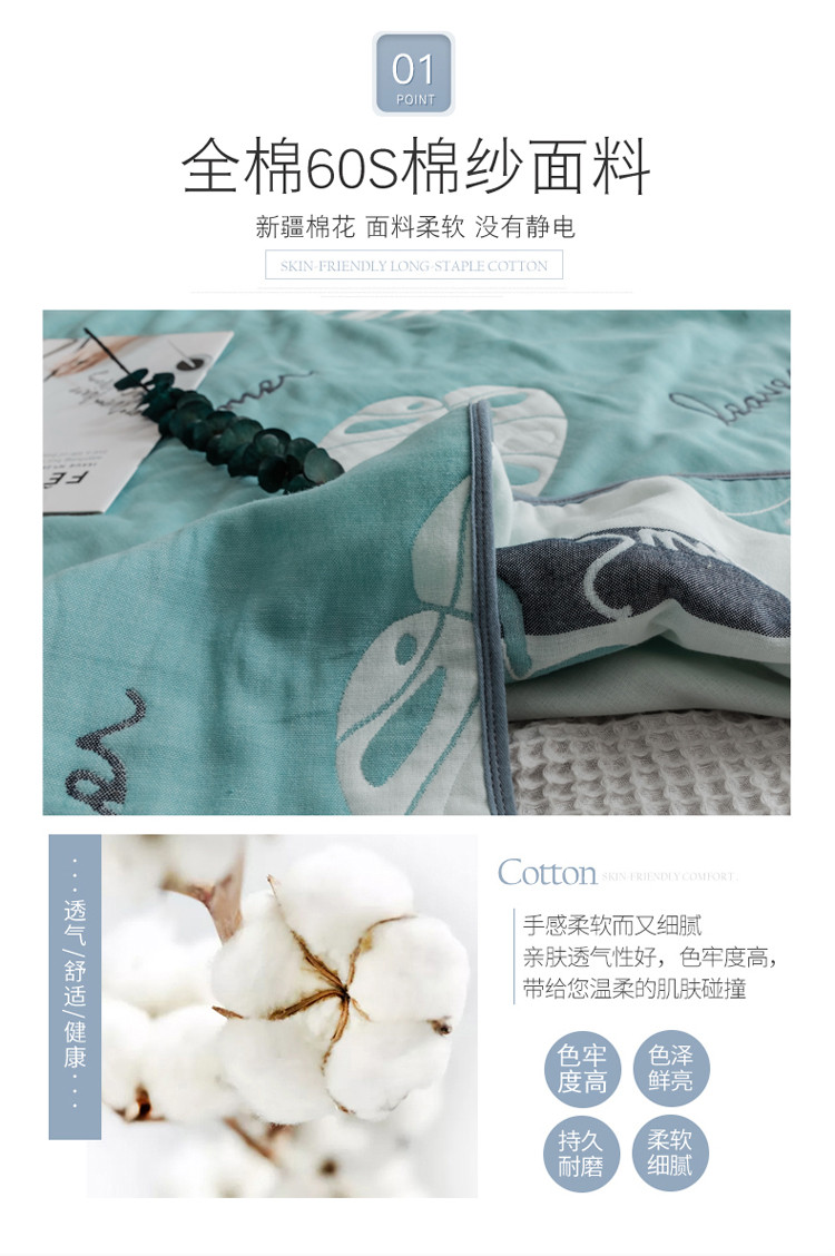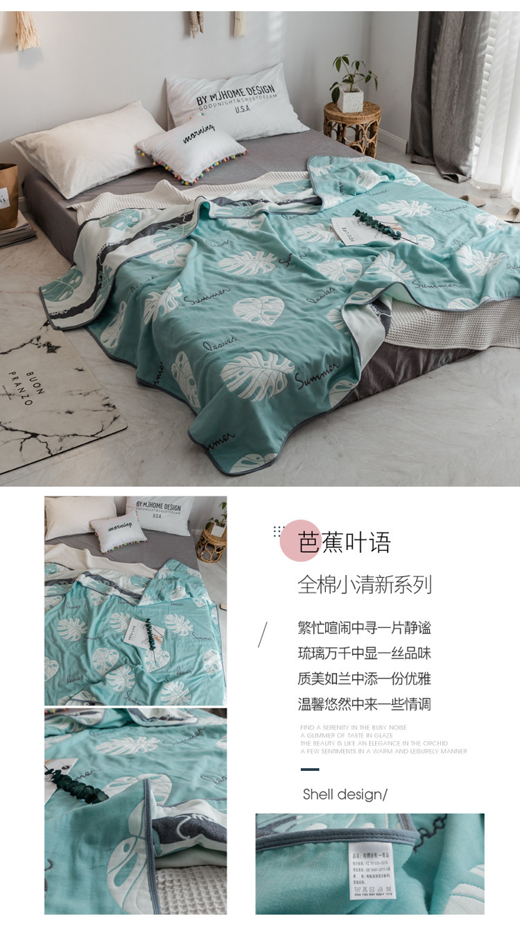 商品名称:朴尔 2021新款时尚六层全棉纱布毛巾被芭蕉叶语