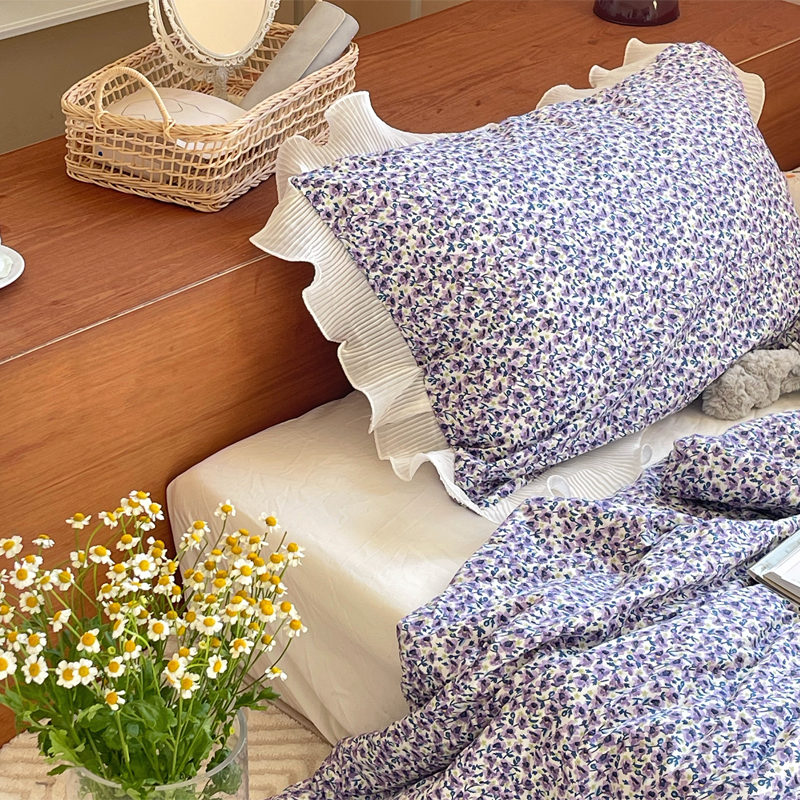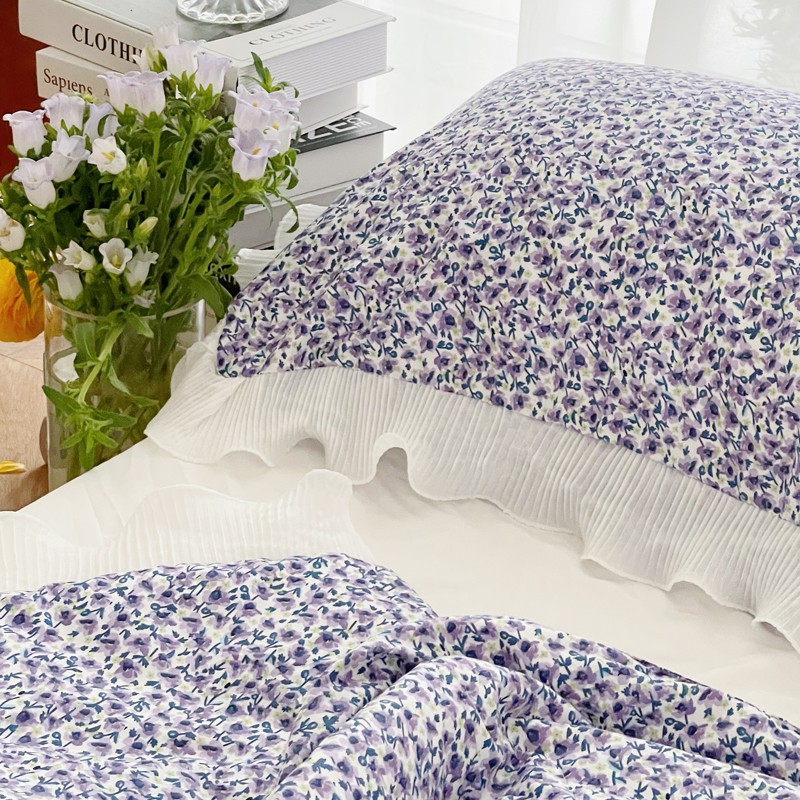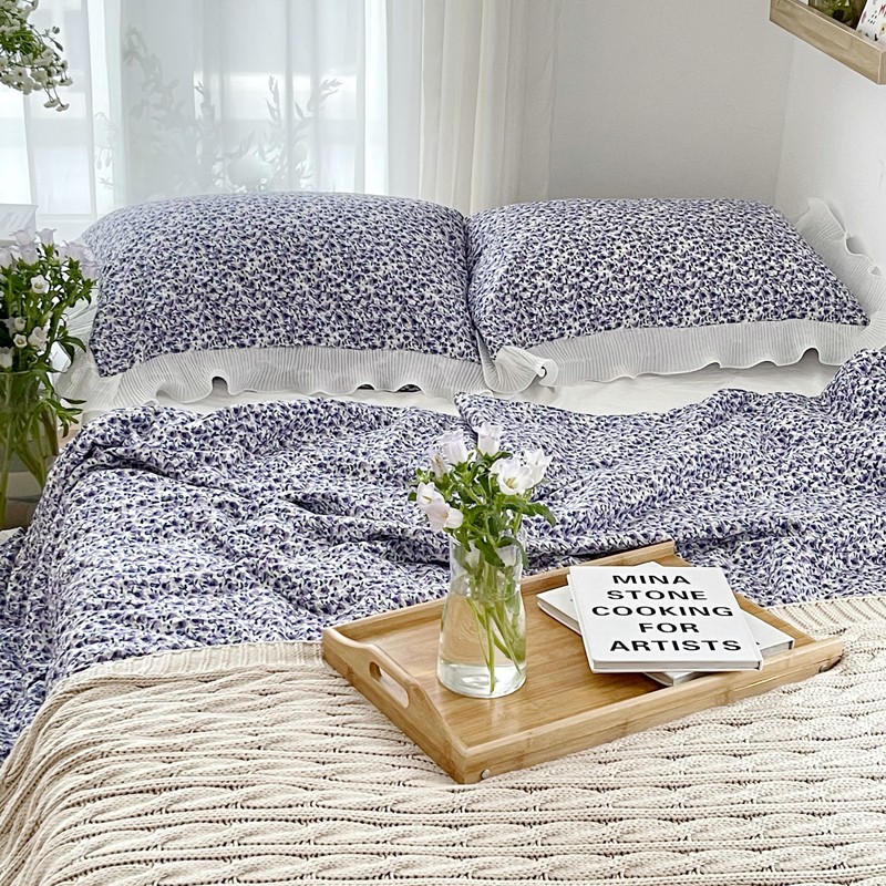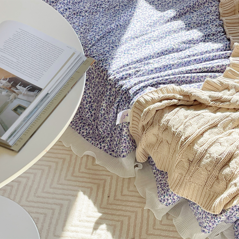 源启生活 2021韩版荷叶边全棉夏被三件套纯棉空调被 白茶