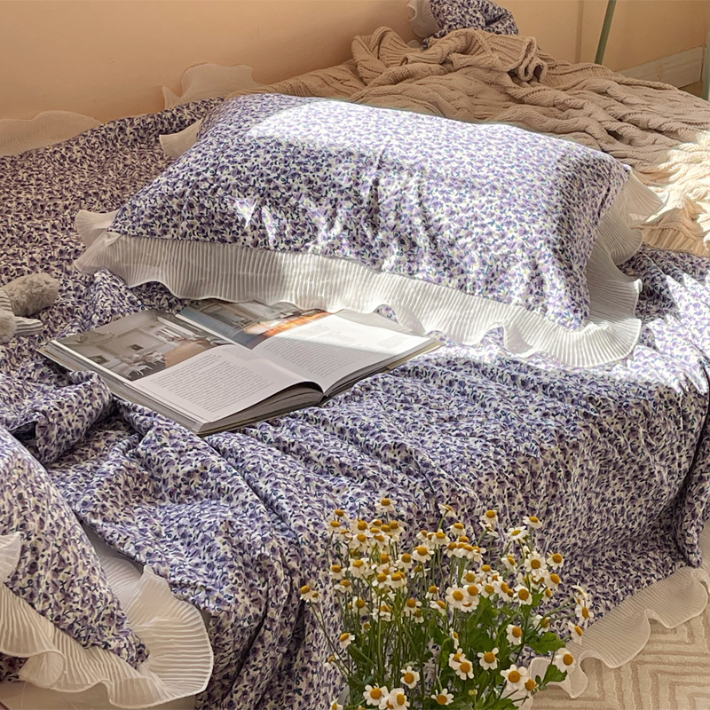 (总)源启生活 2022新全棉法式复古花边双层纱四件套纯棉,菘蓝,西柚,紫莲,蔓菁,曲莲,泽兰