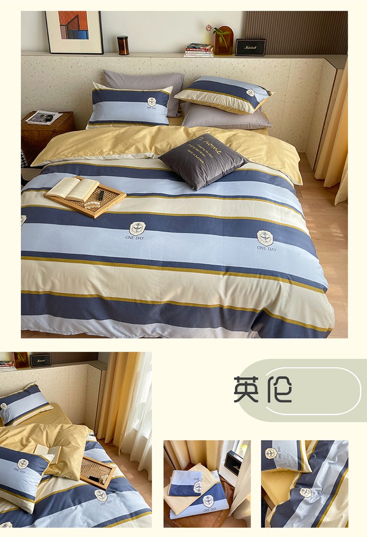 (总)时年家纺 2021新款全棉简约条格系列四件套,北海,轨迹,理想,绅士,威廉,英伦,长岛