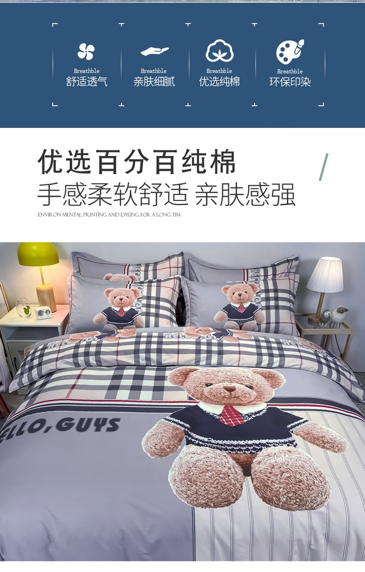 当前位置: 91家纺网 > 商品网购 > 床品套件 > 四件套 > 全棉普通四件套 > 金爱家 2021新款13372大版全棉卡通四件套 泰迪熊
