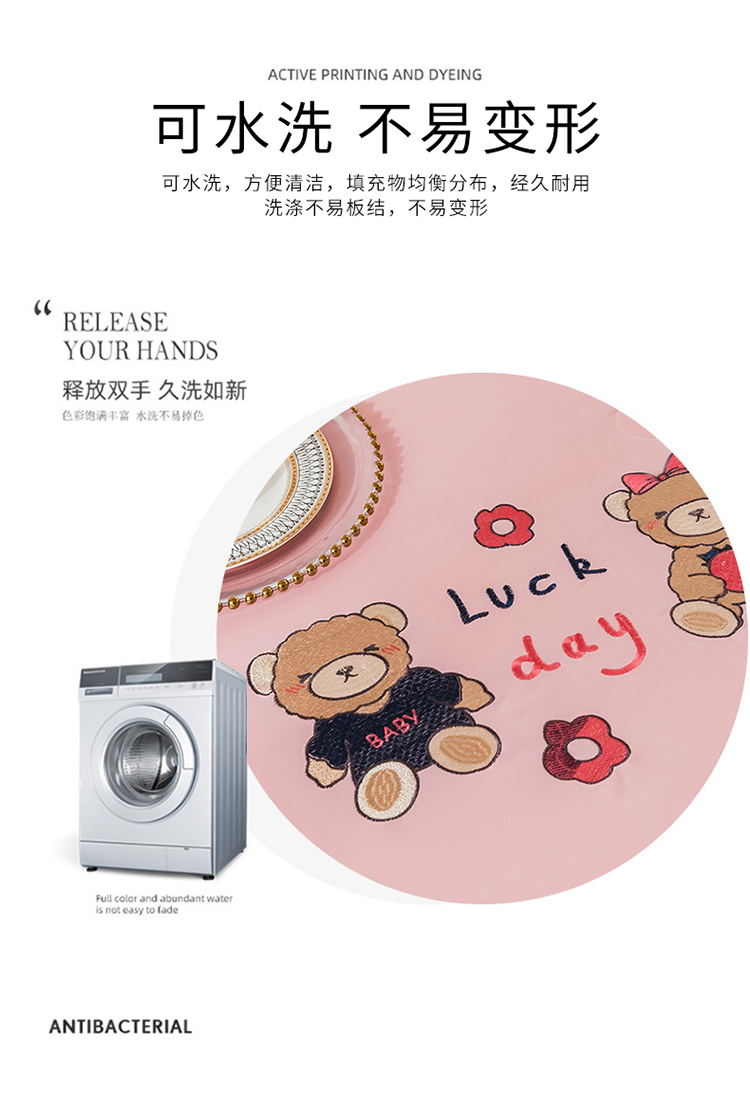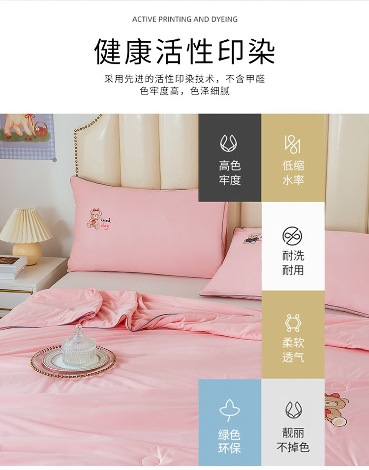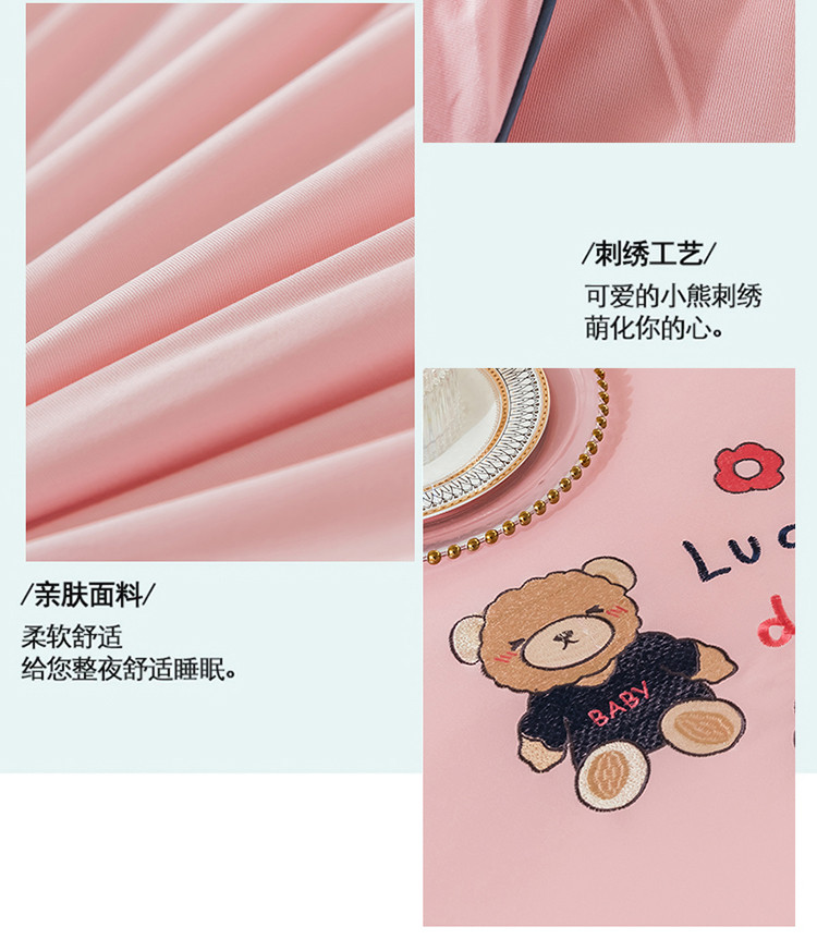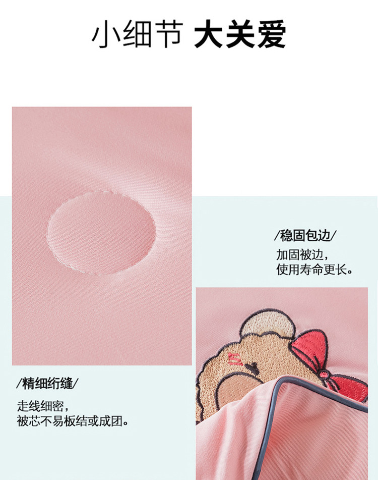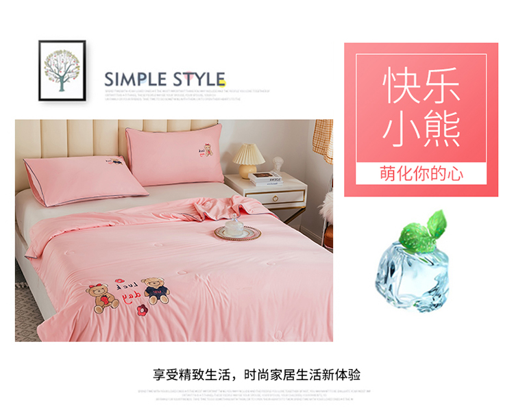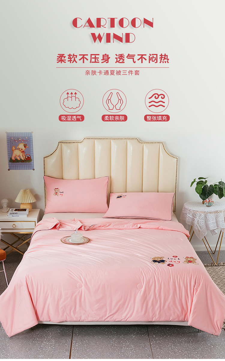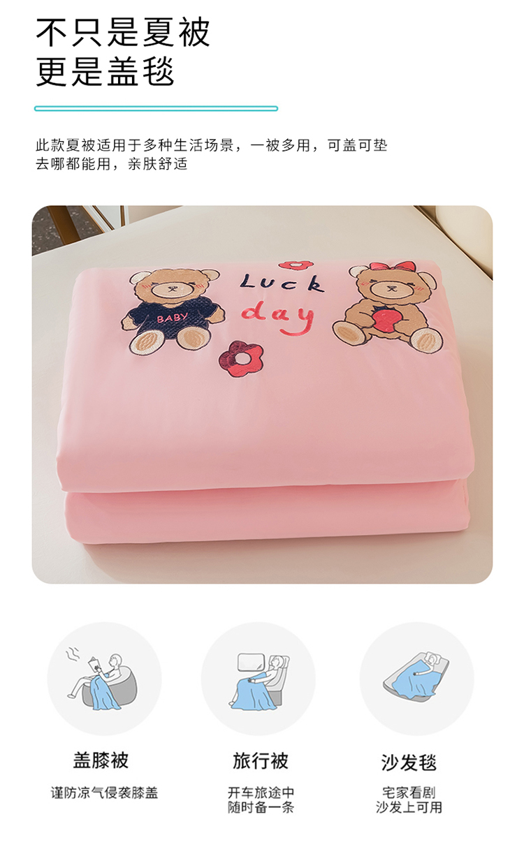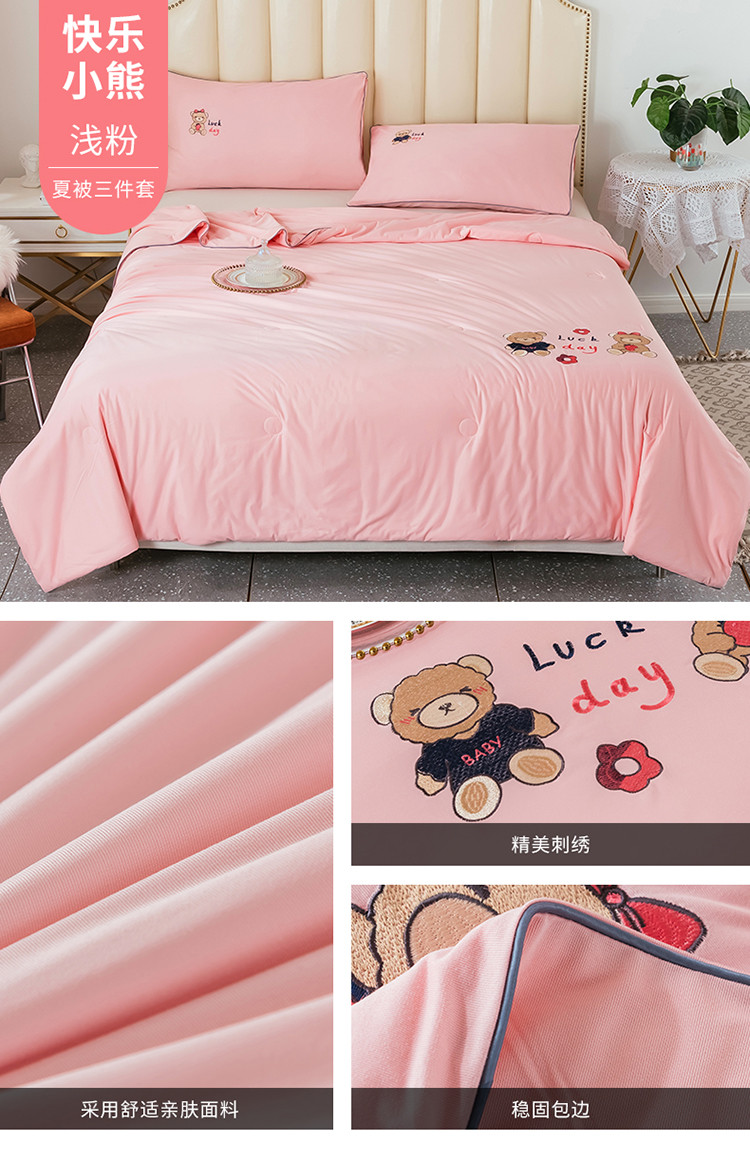 商品名称:芃成家纺 2021新款针织棉绣花夏被 快乐小熊浅粉