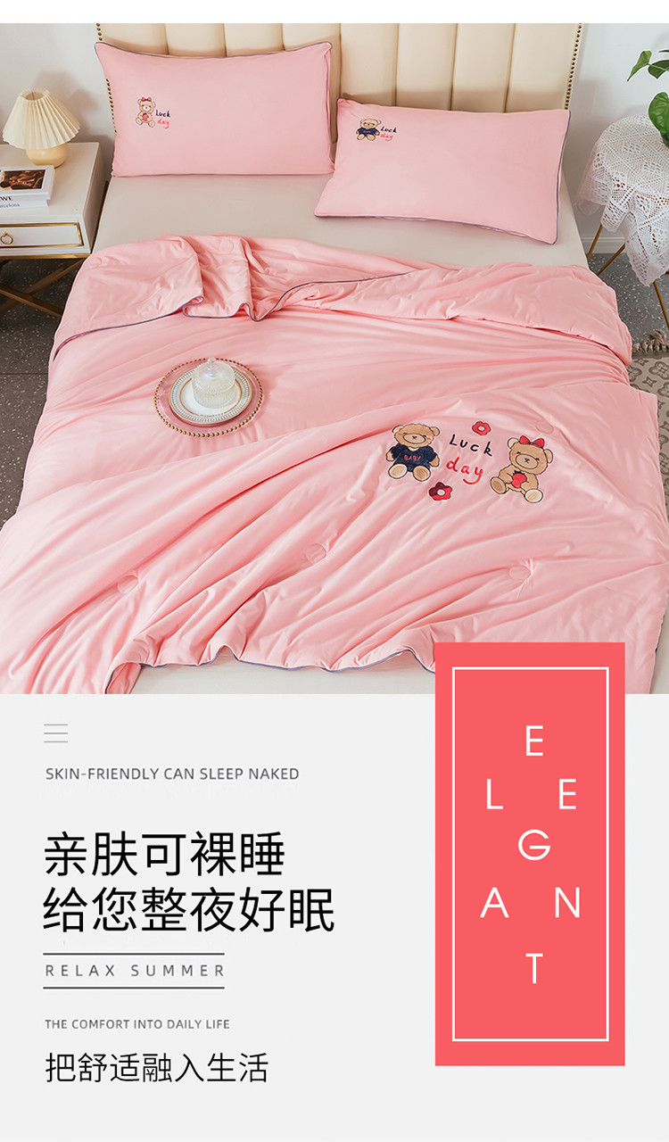 芃成家纺 2021新款针织棉绣花夏被 快乐小熊浅粉