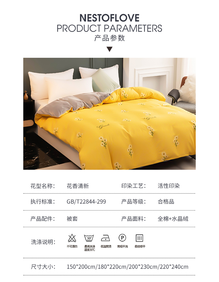 商品名称:芃成家纺 2021新款棉加绒单被套 花香清新