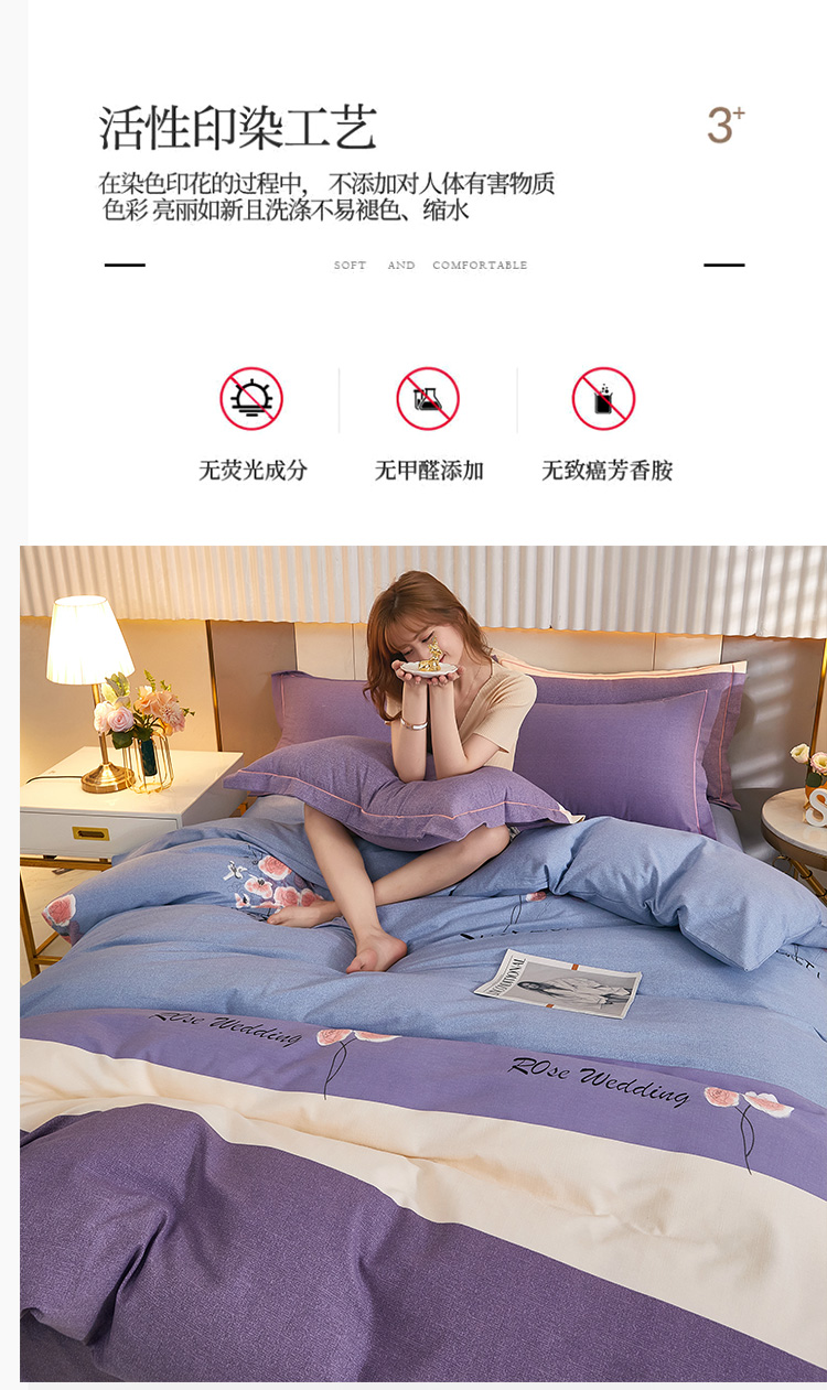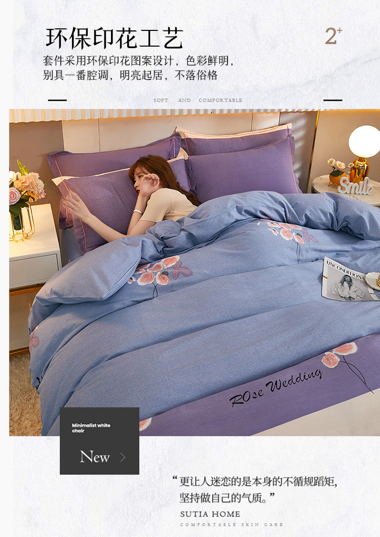 雲归梦2021新款多规格全棉加厚生态磨毛四件套 倾心玫瑰