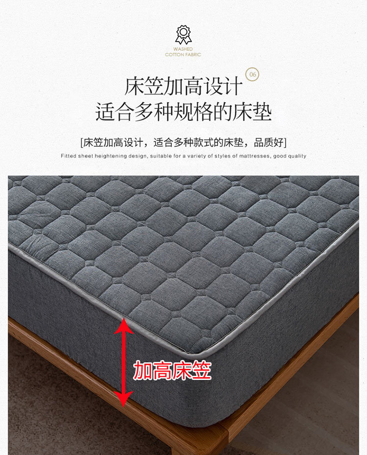 (总)卡伦 2025新款原棉抗菌大豆纤维防水夹棉床笠,白色,淡粉,果绿,卡其,水蓝,星灰