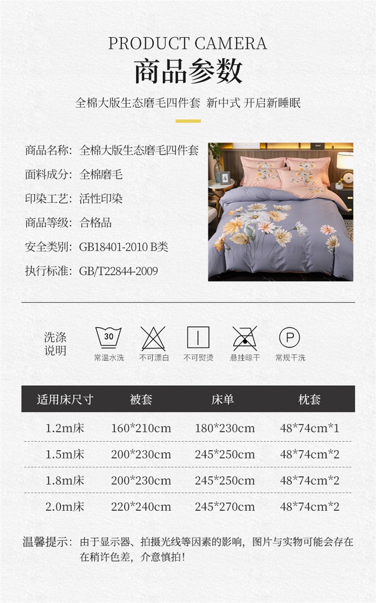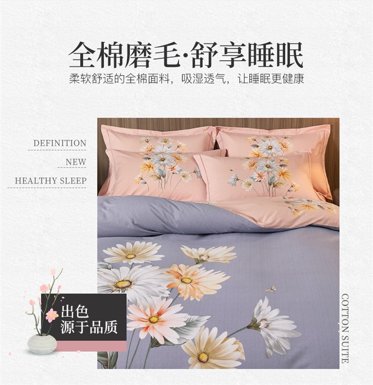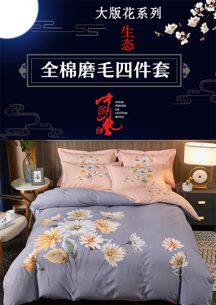 商品名称:芊寻家居 2024新款全棉大版磨毛四件套 丽日幽香