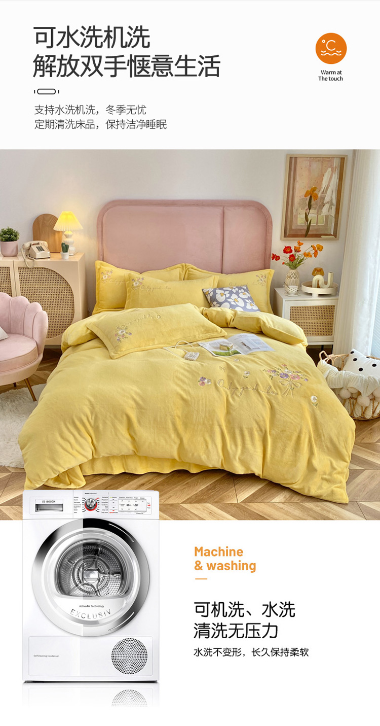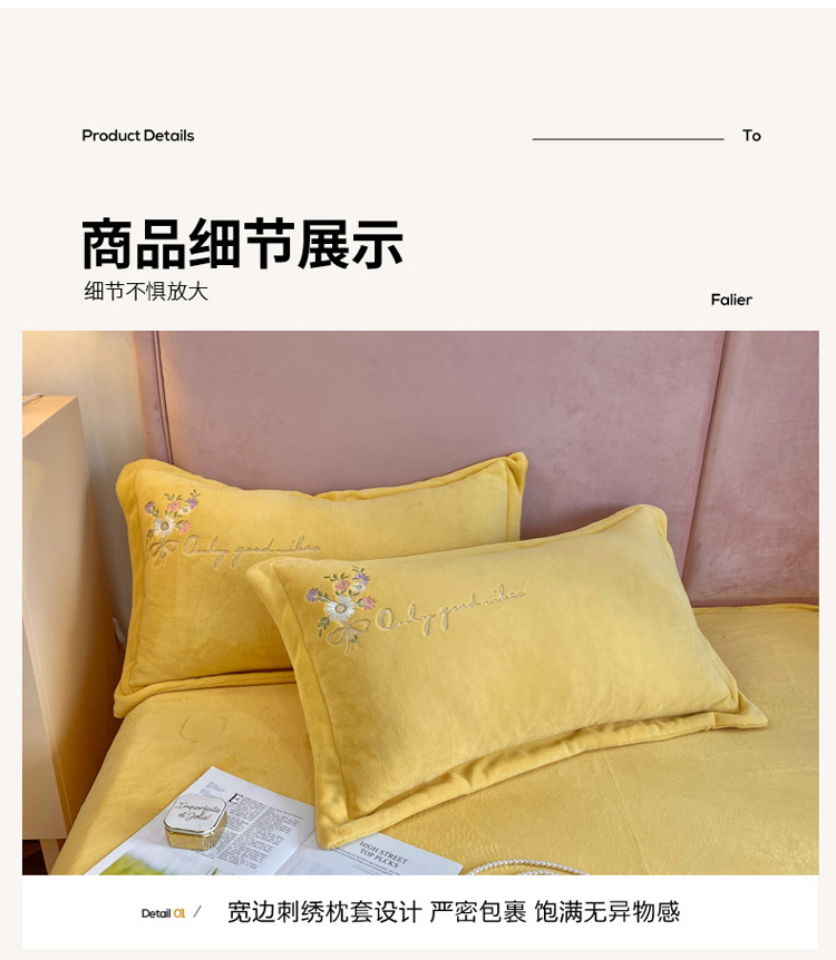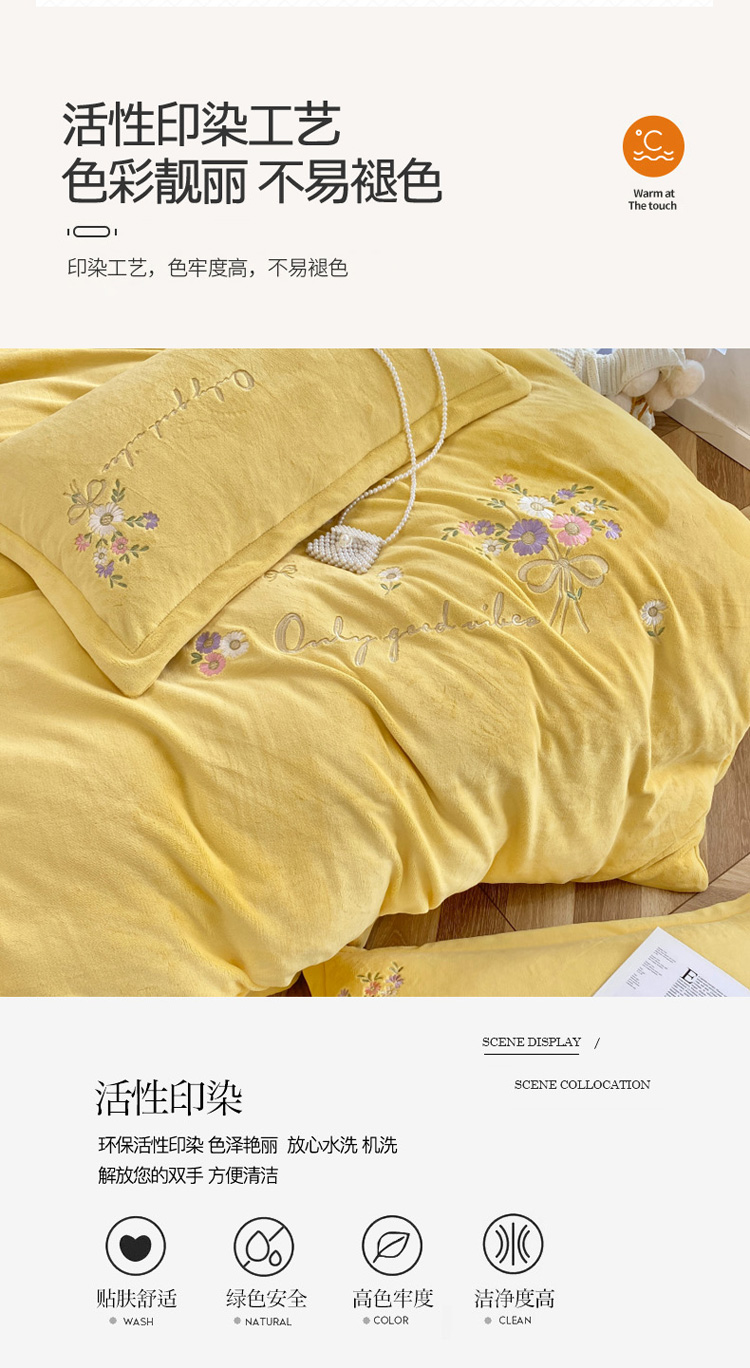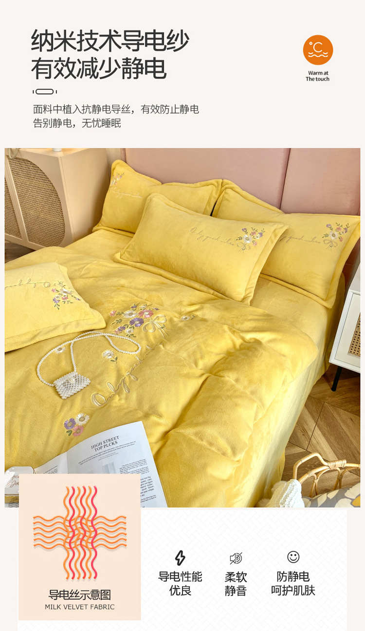 商品名称:星尚家纺 2021新款轻氧绒A类牛奶棉绒加厚绣花四件套 奶油黄