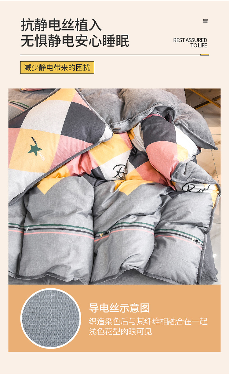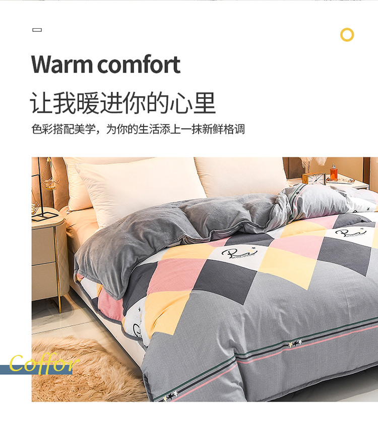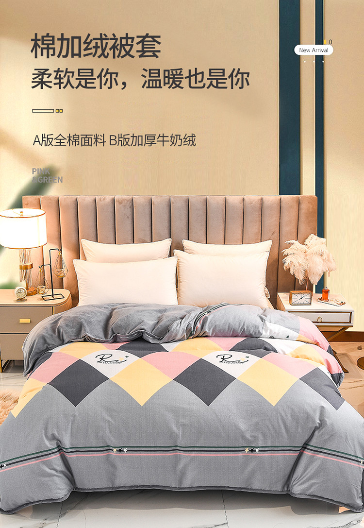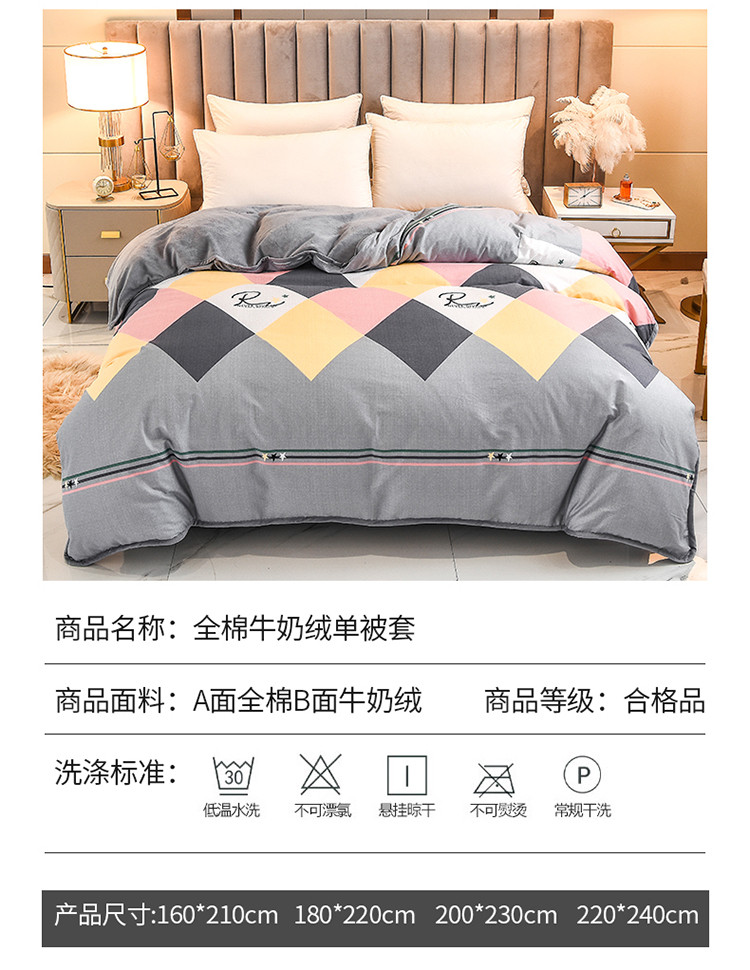 琪琪阁 2023新款A棉B绒棉加绒牛奶绒四件套单被套 简约人生,简约人生