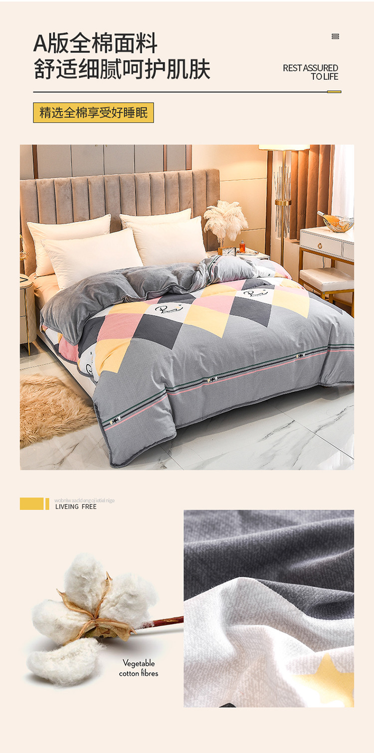 2021新款加厚棉加绒四件套A全棉B水牛奶绒单被套旅行家
