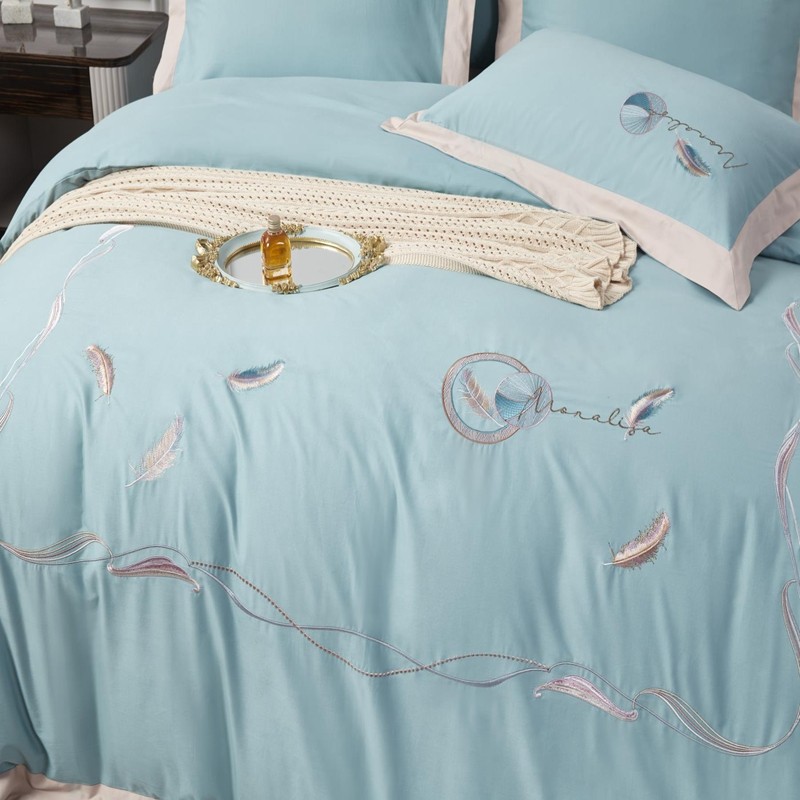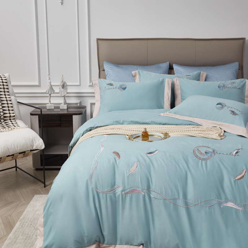 总玖玖爱家纺 纯棉100支贡缎长绒棉刺绣被套三件套四件套加大四件套,白色,高级灰,卡其,蓝灰,绿色,浅桔,深蓝,紫豆沙
