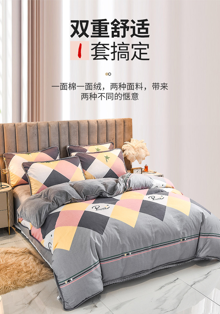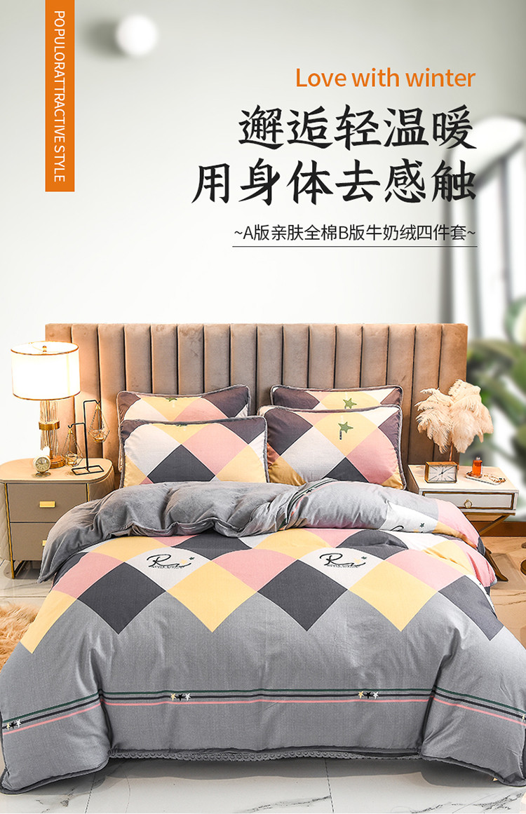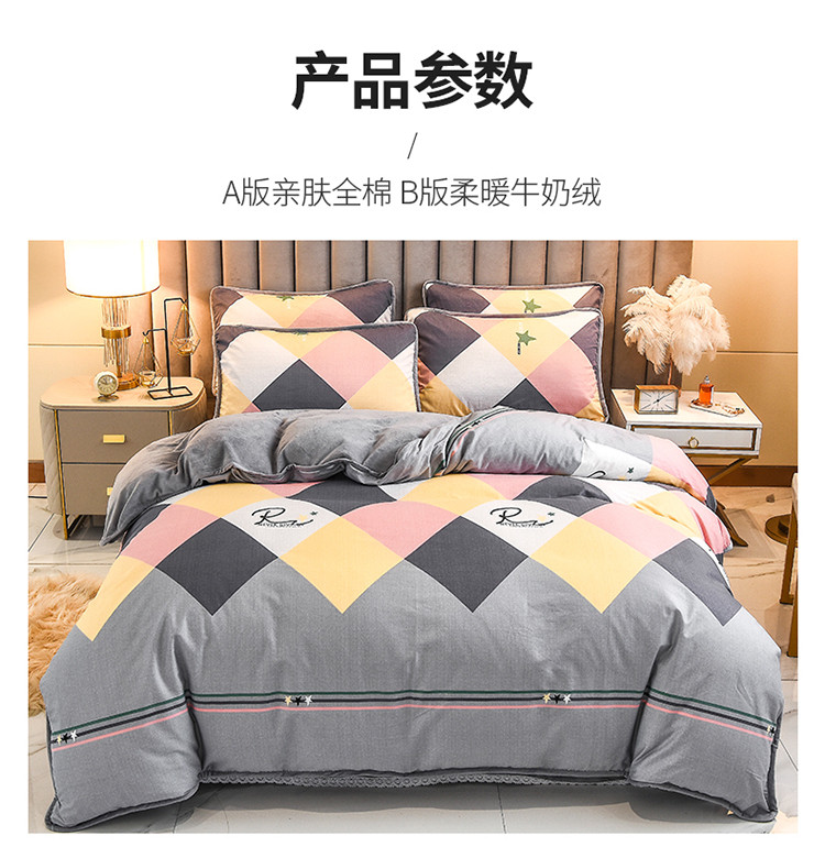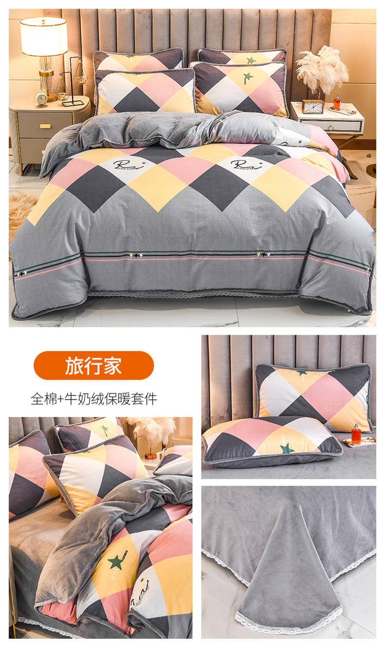 当前位置: 91家纺网 > 商品网购 > 床品套件 > 四件套 > 牛奶绒四件套 > 琪琪阁 2021新款全棉+牛奶绒四件套旅行家