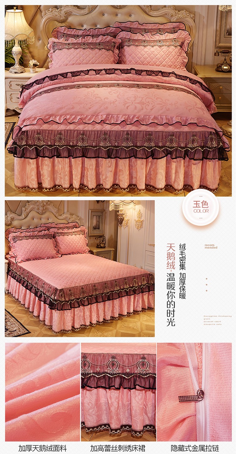 (总)网红馆 2025新款梦庭花开天鹅绒单品床裙被套枕套