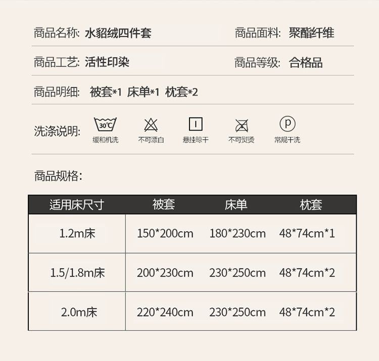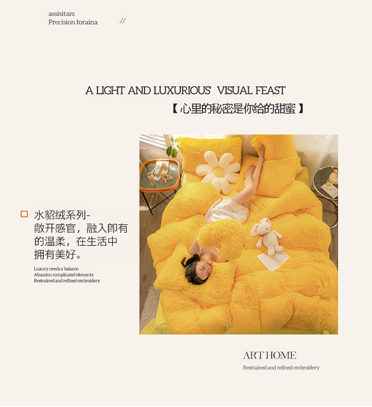 商品名称:(总)蝶帕2024年新纯色加厚保暖水貂绒四件套牛奶法莱绒套件