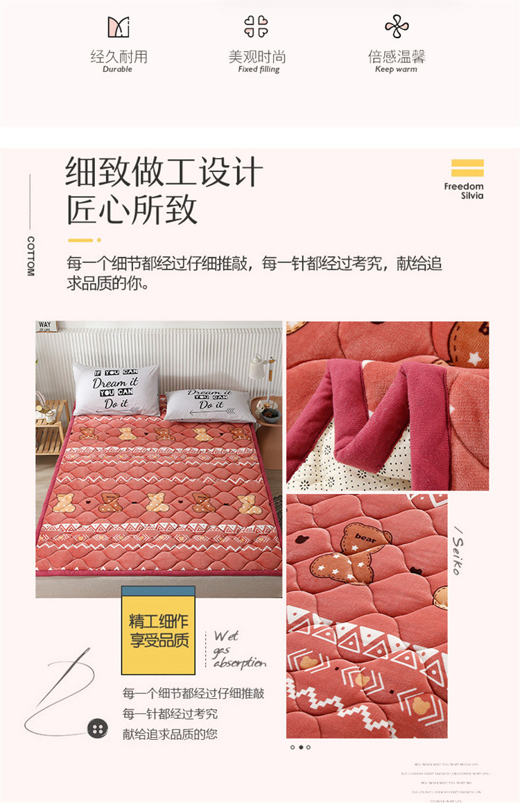 当前位置: 91家纺网 > 商品网购 > 床垫/床褥/床护垫 > 普通床垫 > 东宇床垫 2022新款加厚微芙绒床垫 俏皮熊