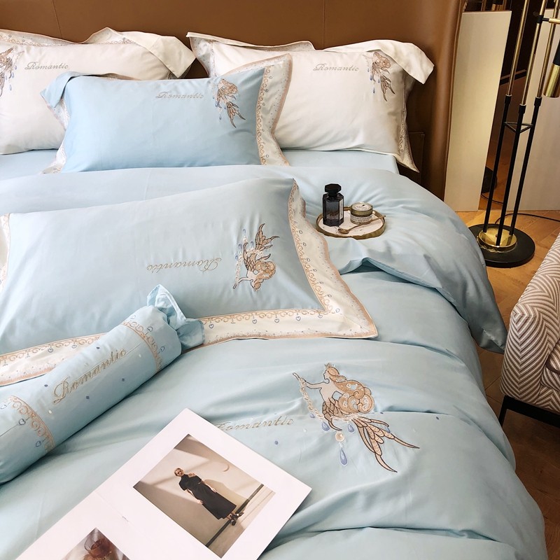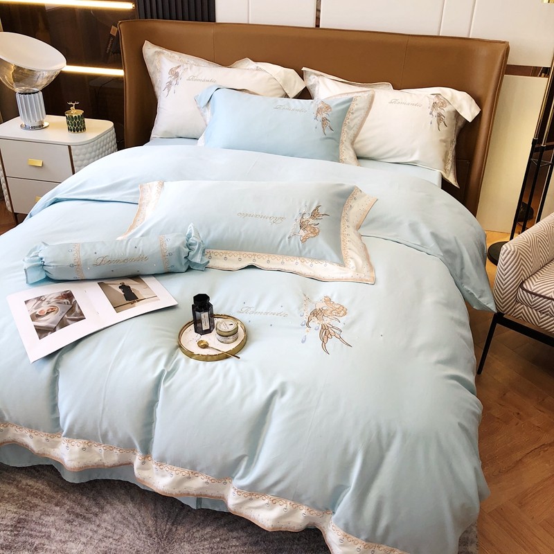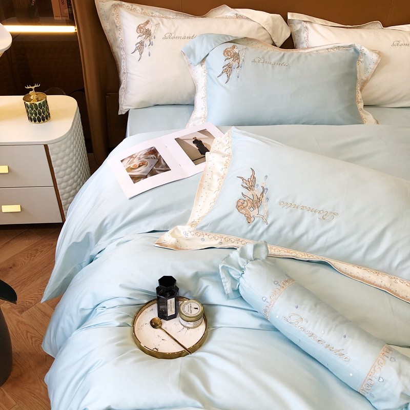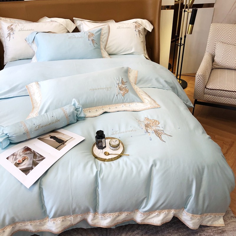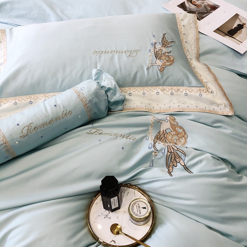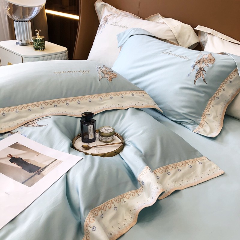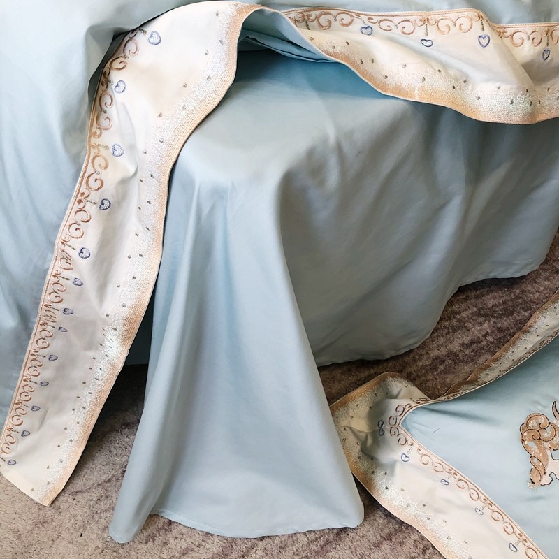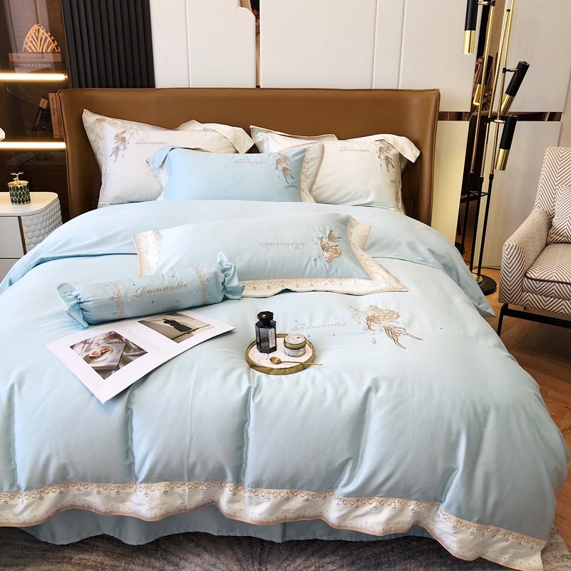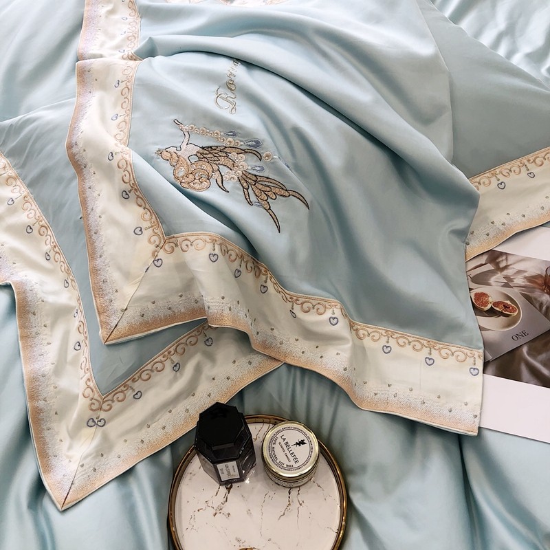 商品名称:馨蕊家居秋冬新品100支澳棉四件套高定系列-美人鱼 湖水蓝