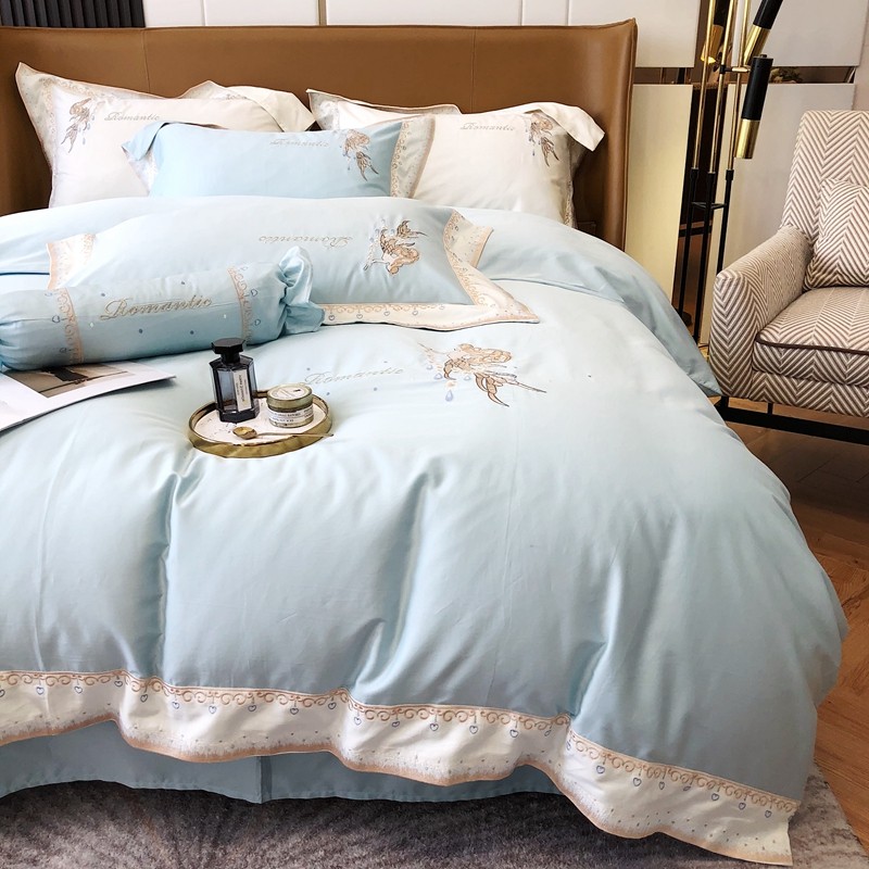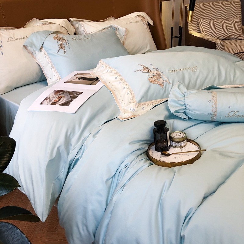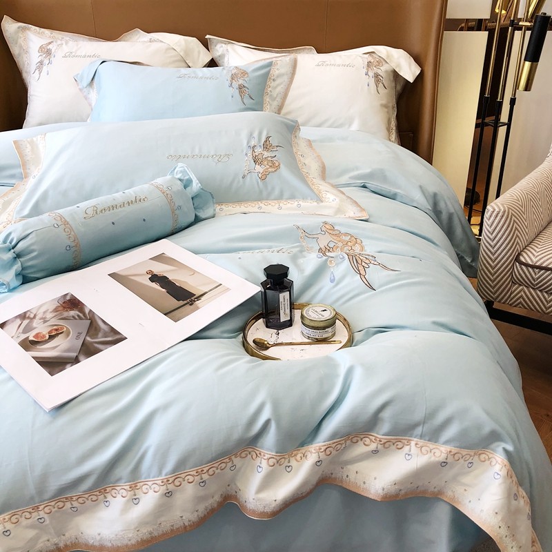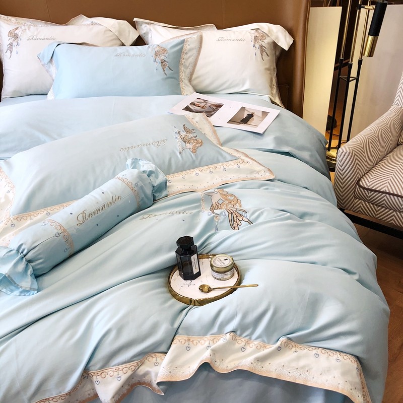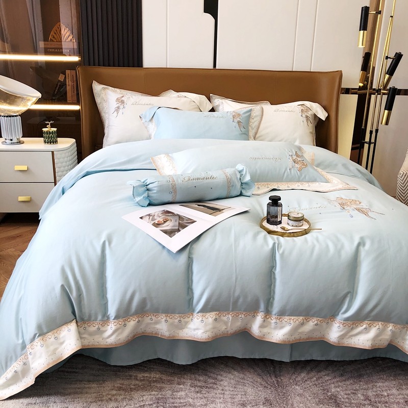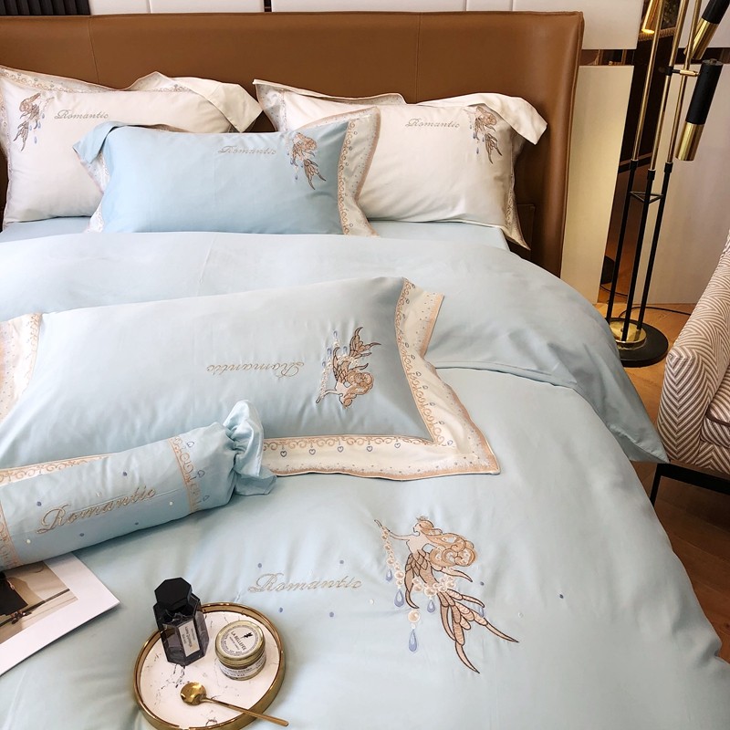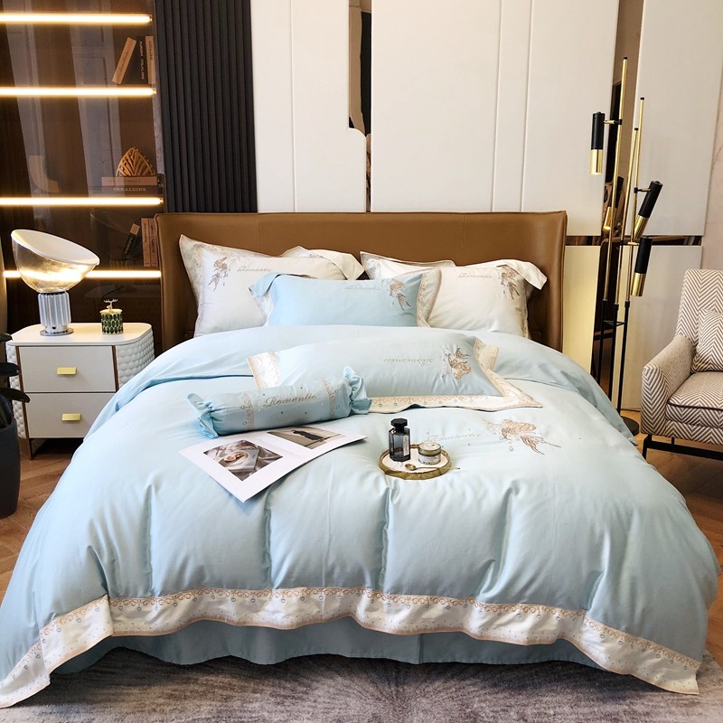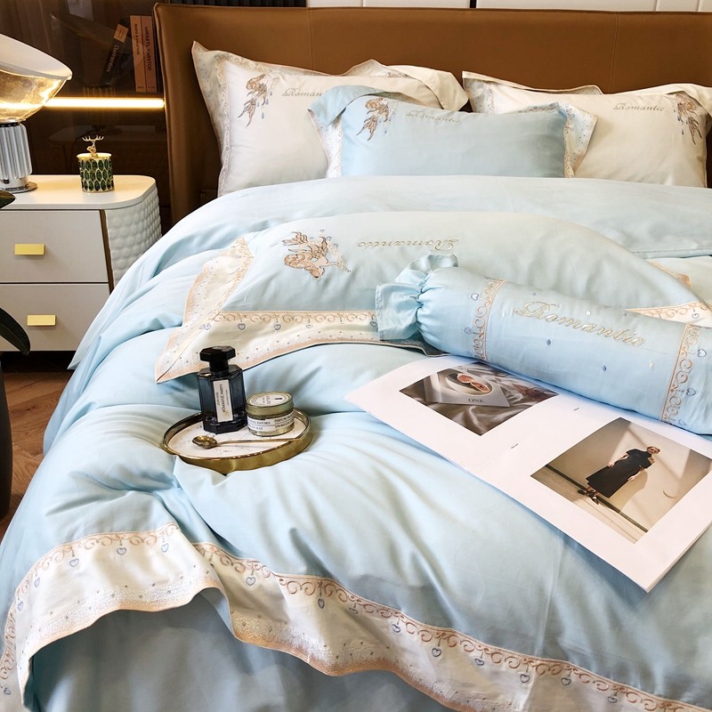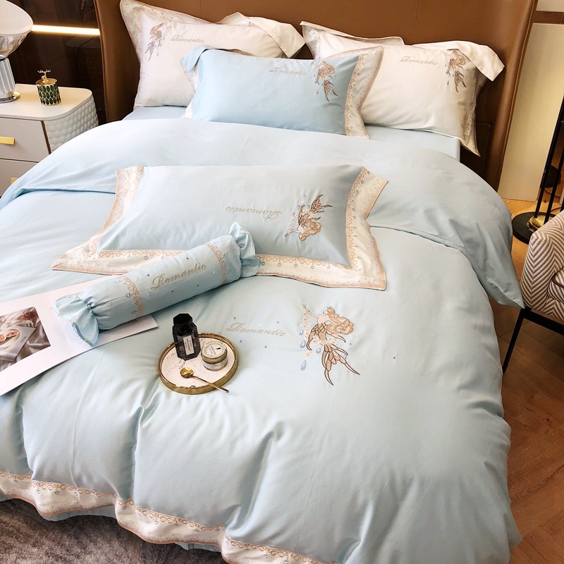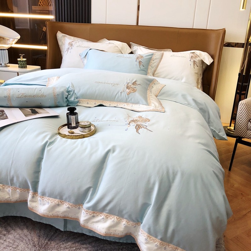 商品名称:馨蕊家居秋冬新品100支澳棉四件套高定系列-美人鱼 湖水蓝