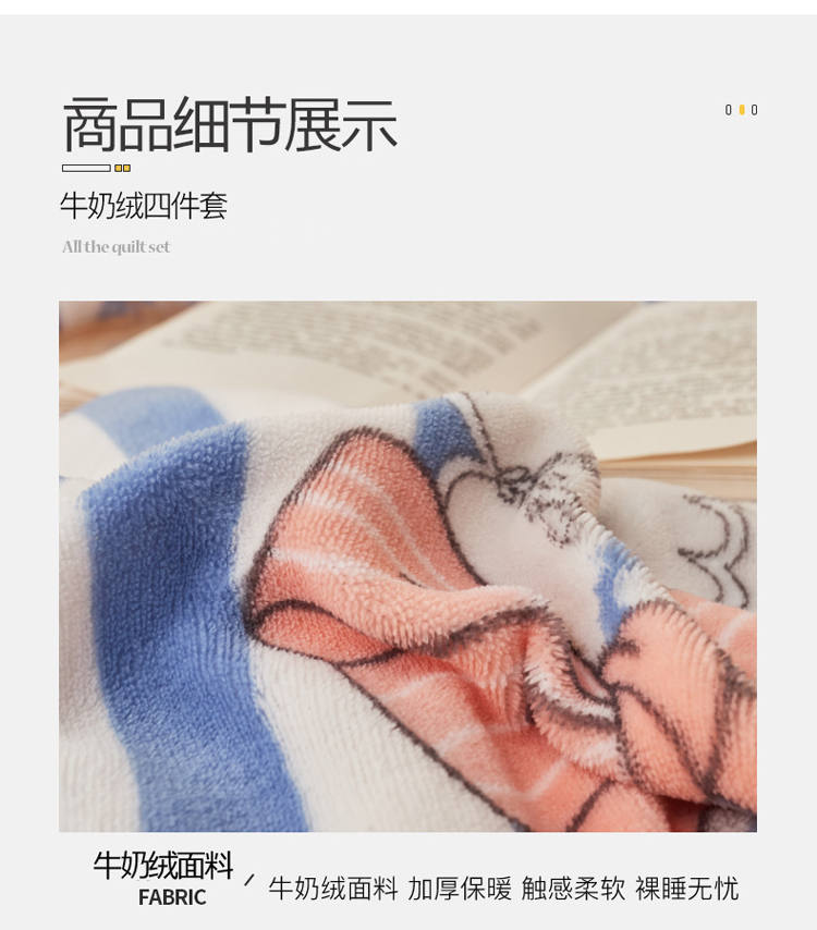 (总)寐居家纺 2025新款贴布绣高克重牛奶绒四件套,安吉拉喵,查理狗,粉糯kitty,皮皮布布
