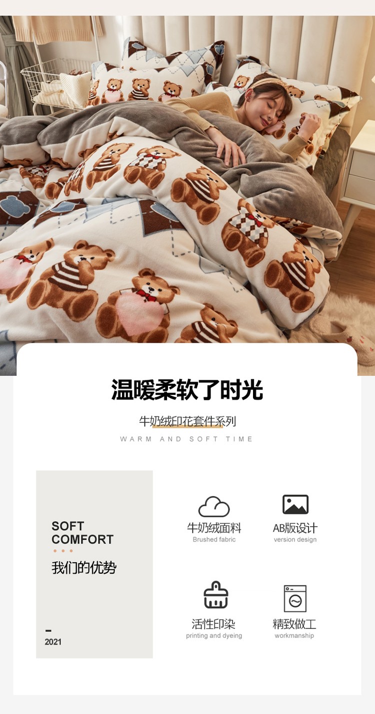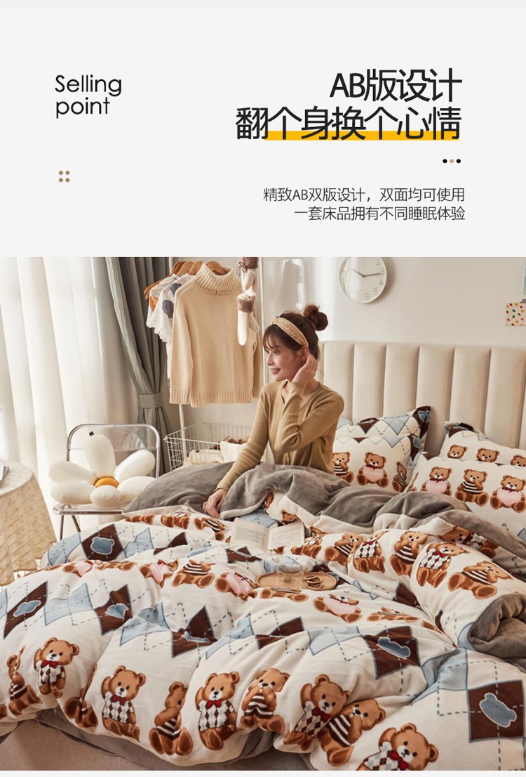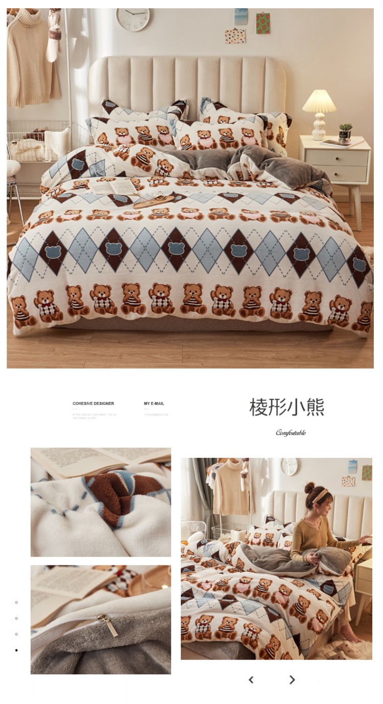 商品名称:寐居家纺 2021新款牛奶绒单被套棚拍图 菱形小熊