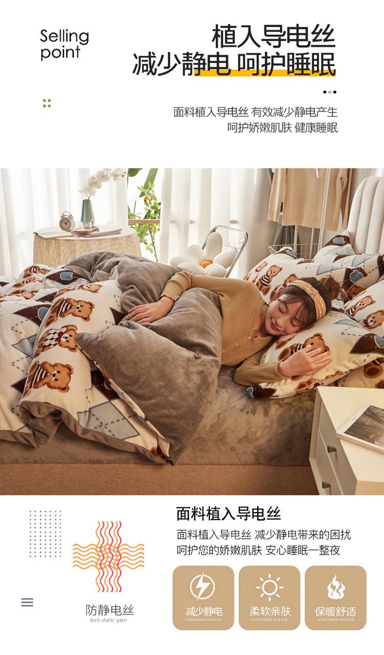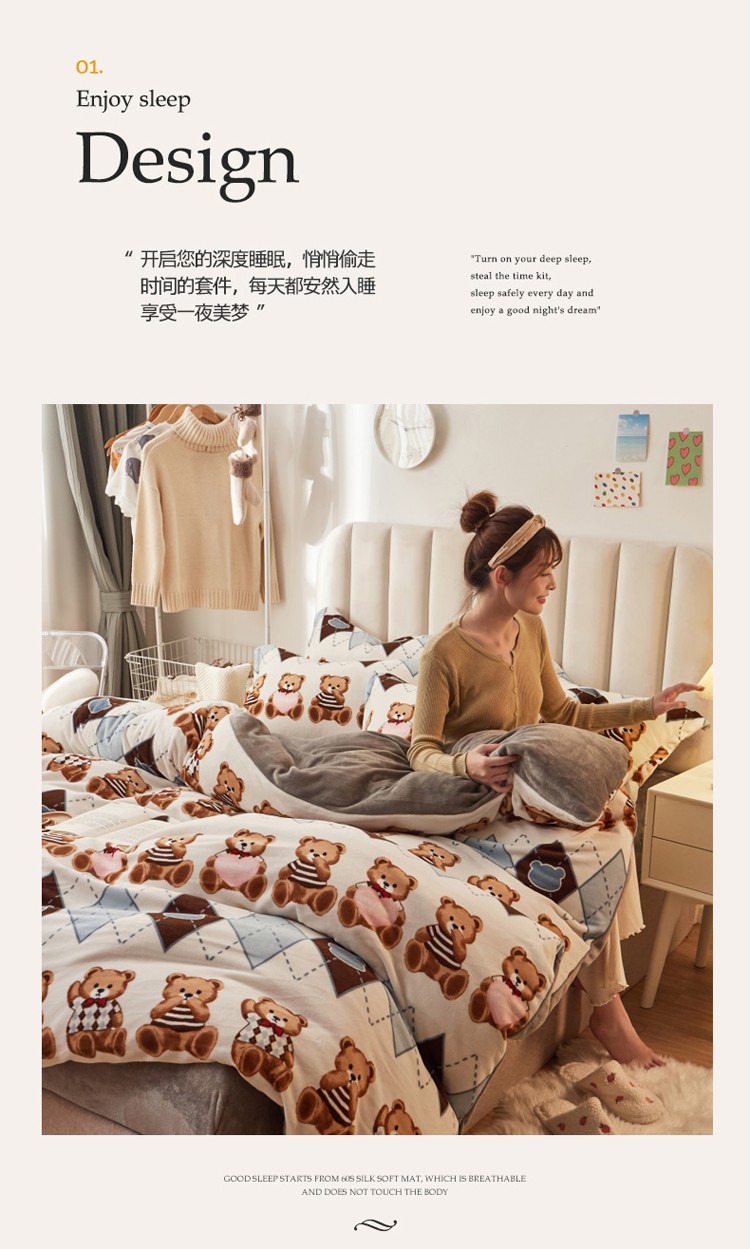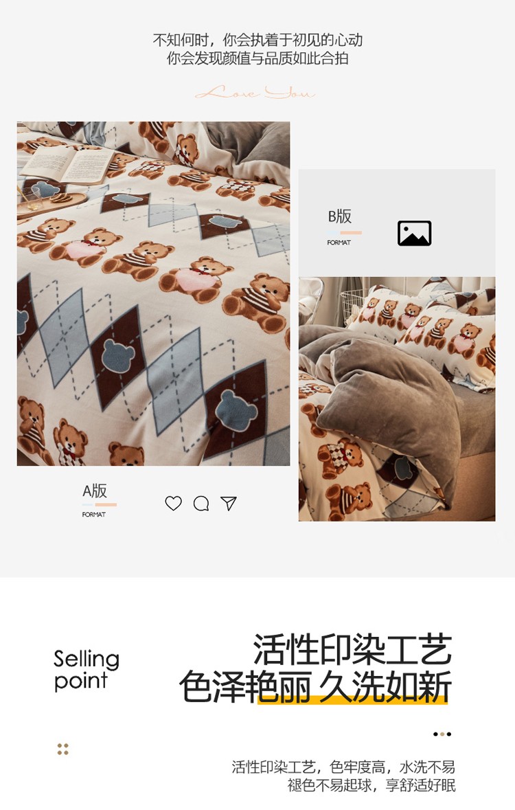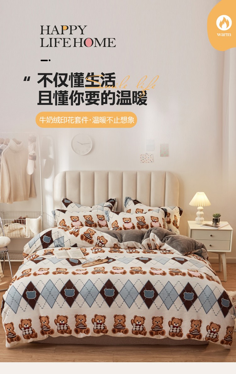 商品名称:寐居家纺 2021新款牛奶绒单被套棚拍图 菱形小熊