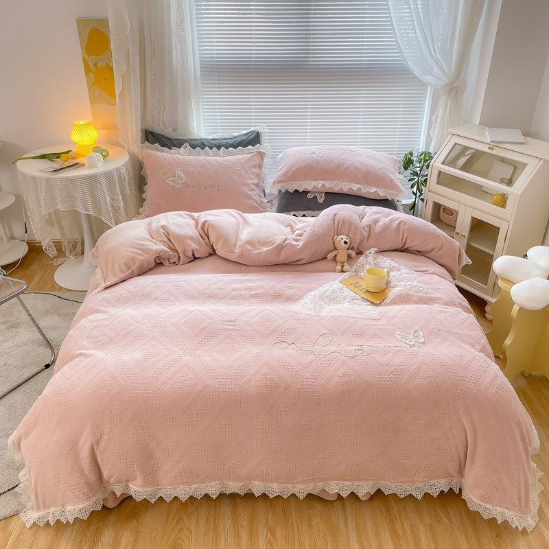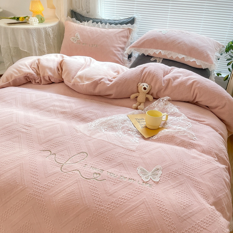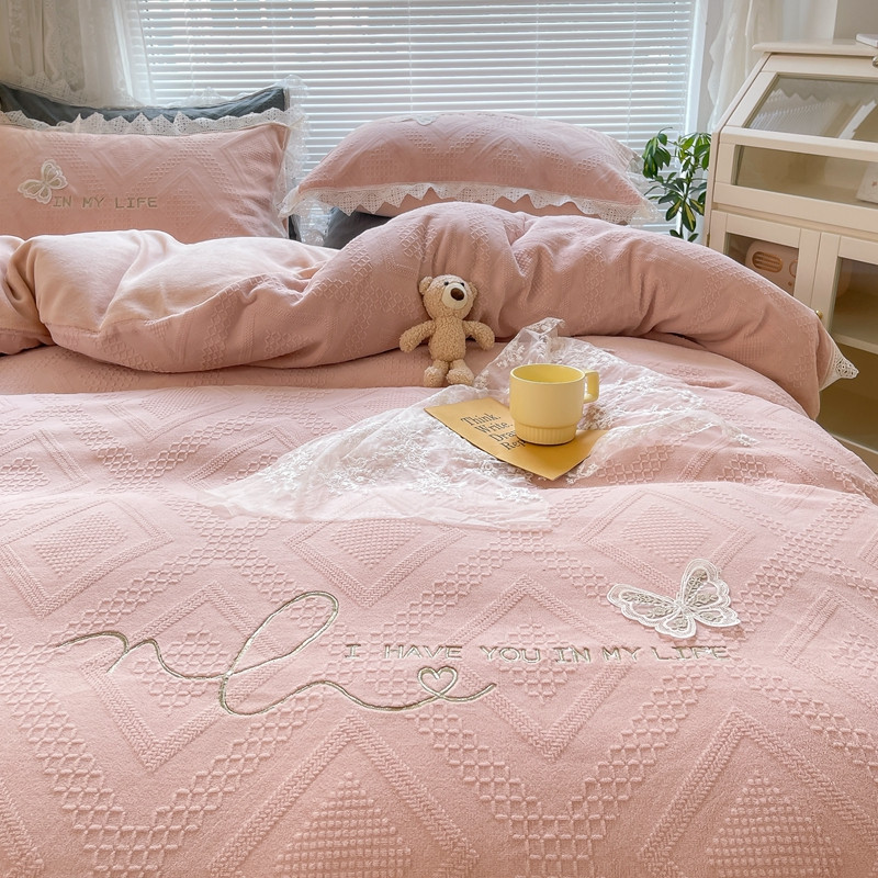 当前位置: 91家纺网 > 商品网购 > 床品套件 > 四件套 > 牛奶绒四件套 > 北纬27度 2021新款浮雕牛奶绒华尔兹四件套 玉粉