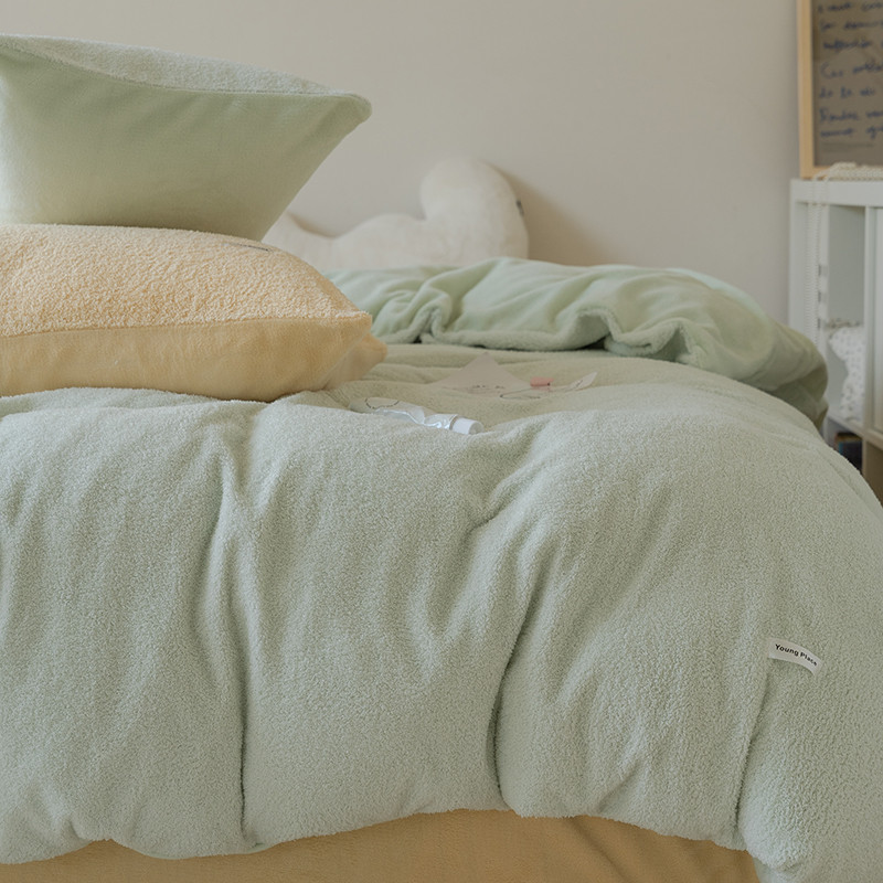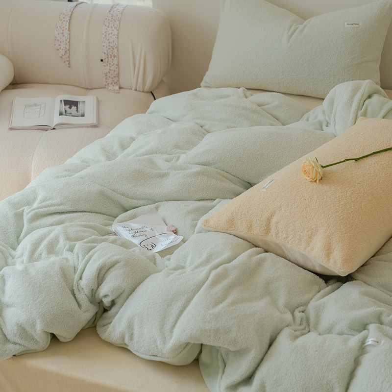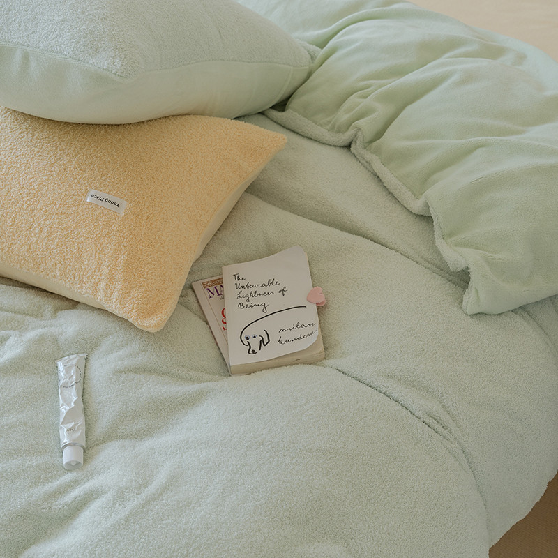 商品名称:洋铭区 2021新款ab版牛奶绒软糖绒四件套 山茶绿