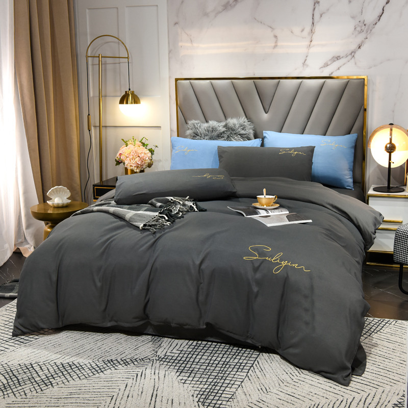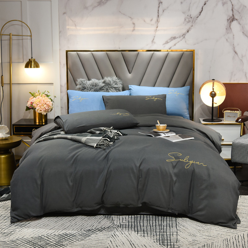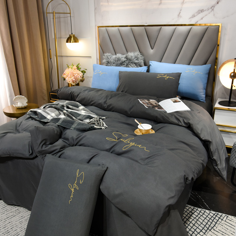 孟鑫家纺 2021新款加厚纯色刺绣磨毛四件套 高级灰