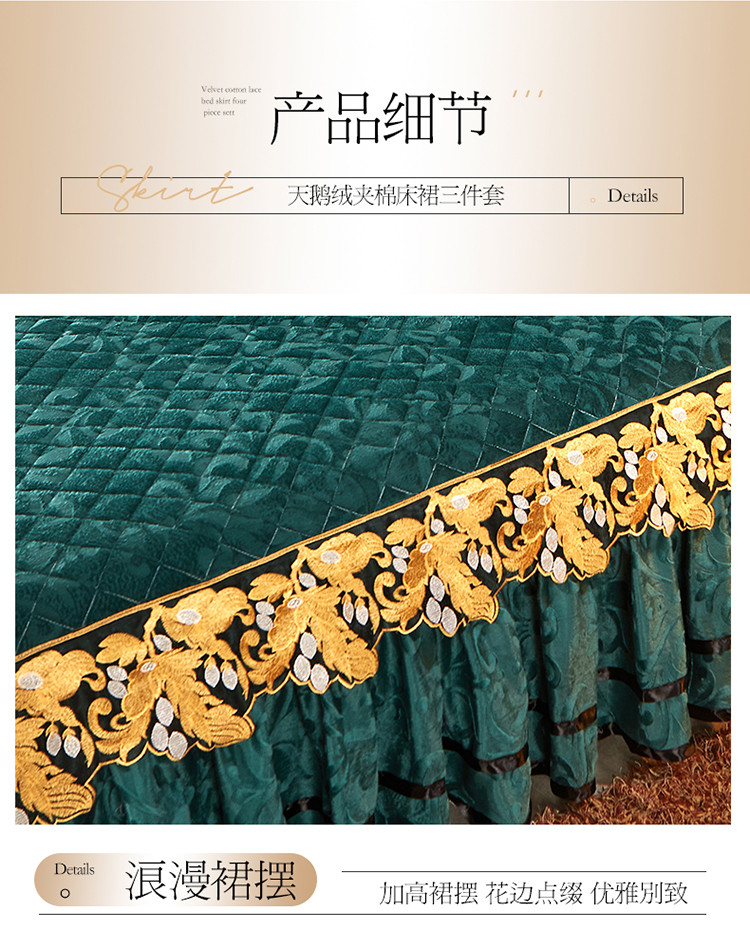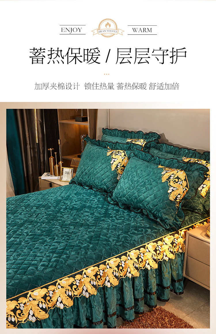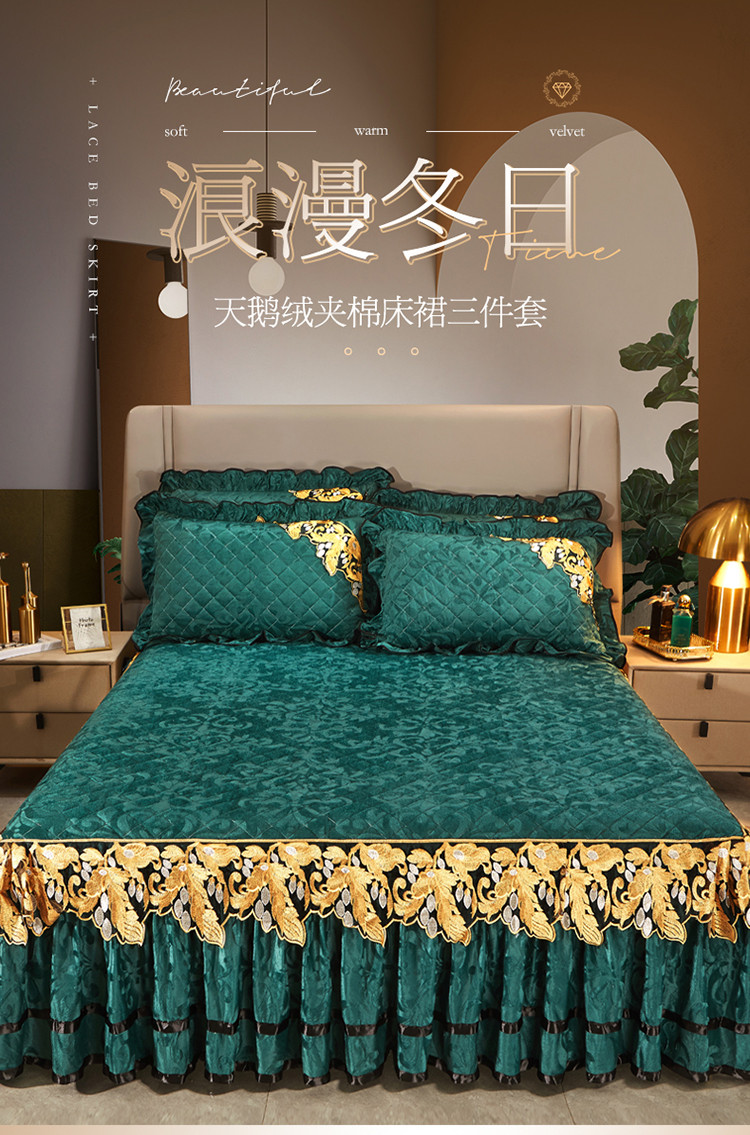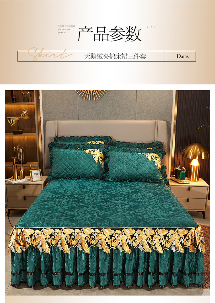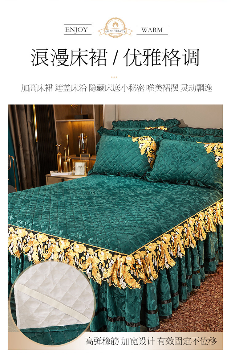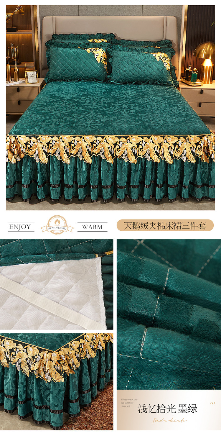 商品名称:网红馆2025新款天鹅绒夹棉单床裙 浅忆拾光-墨绿