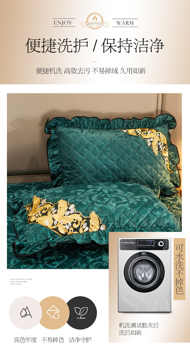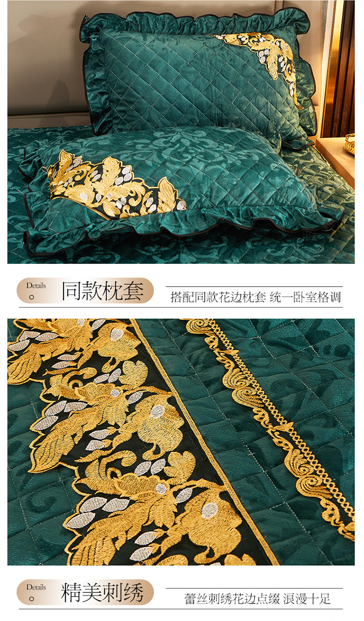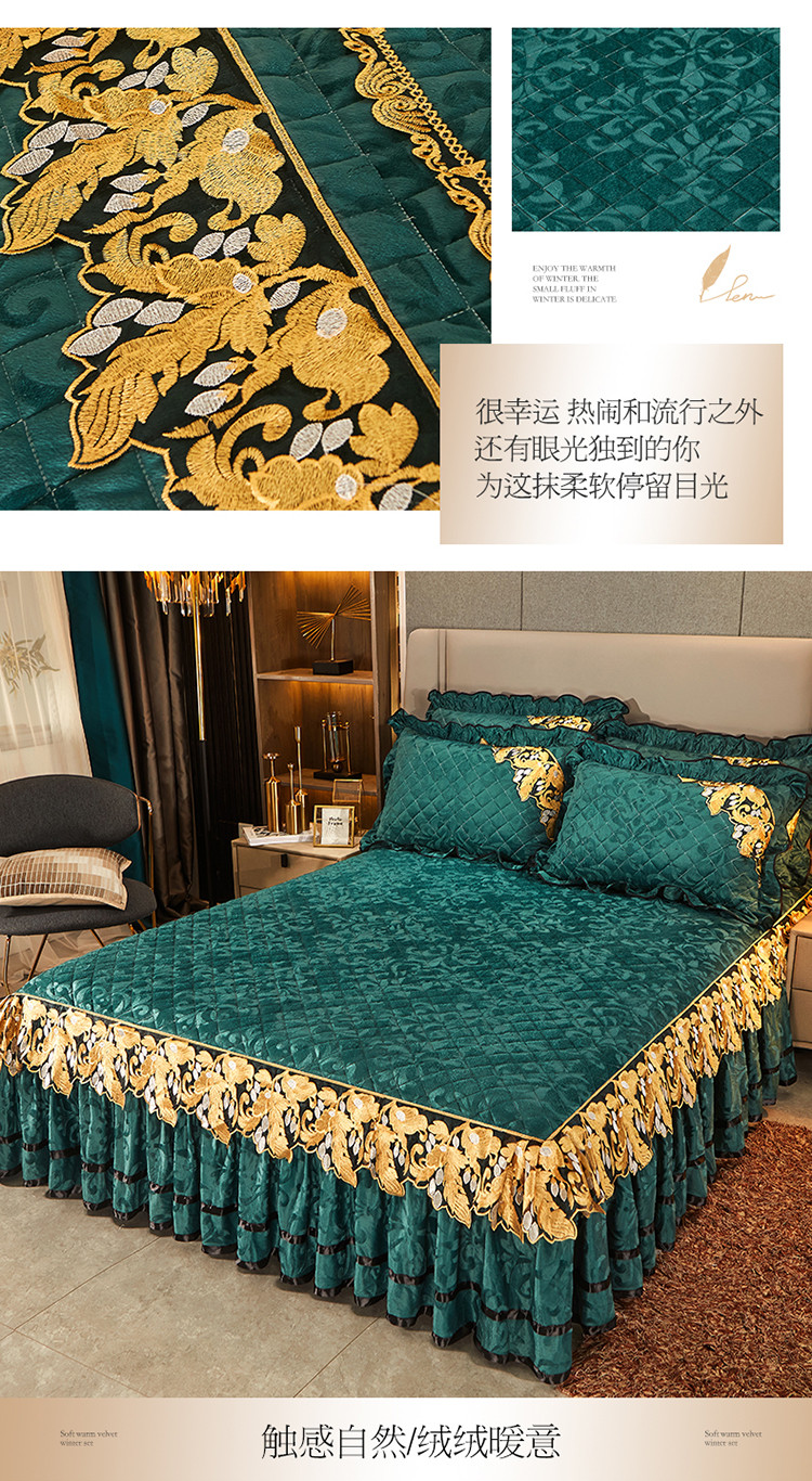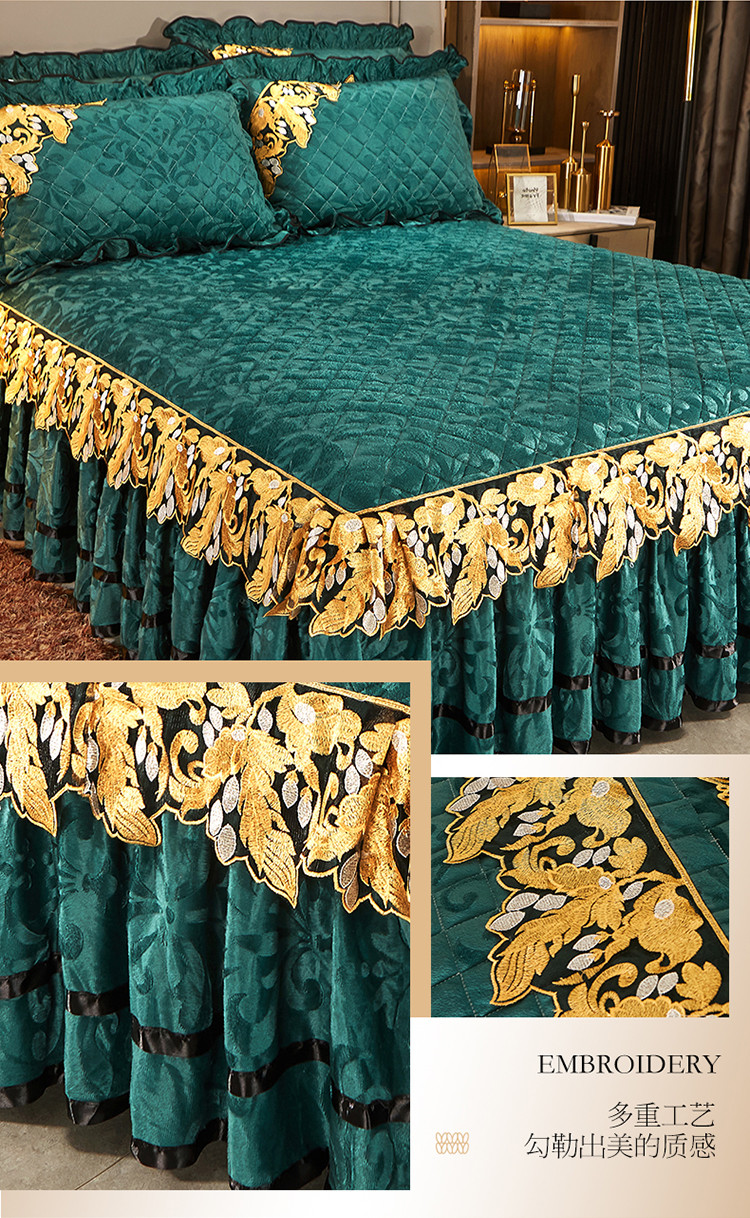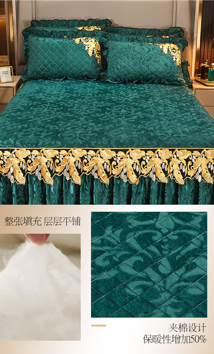 商品名称:网红馆2025新款天鹅绒夹棉单床裙 浅忆拾光-墨绿