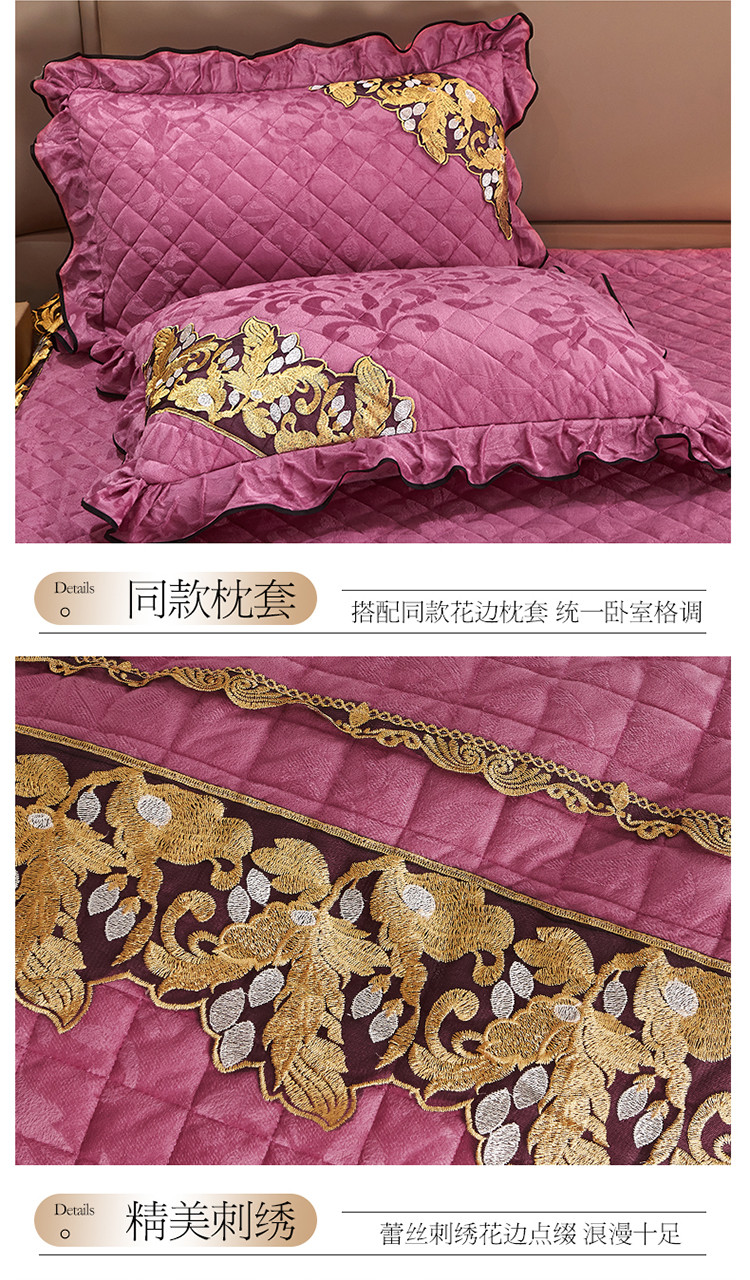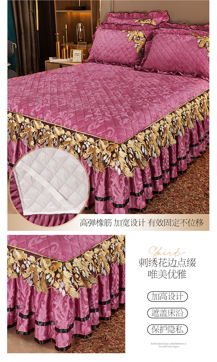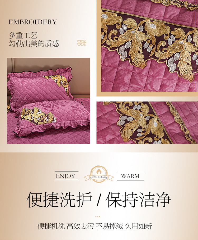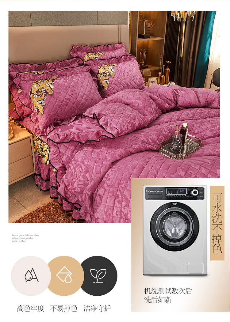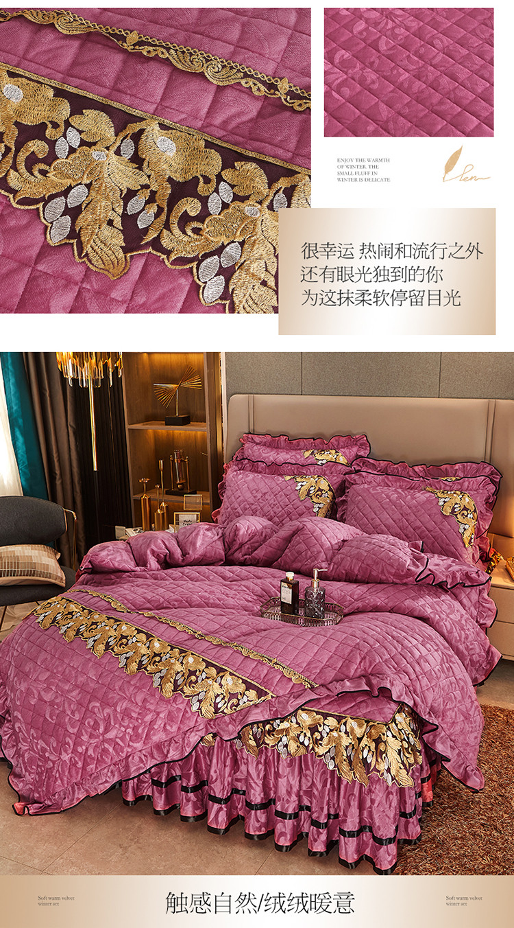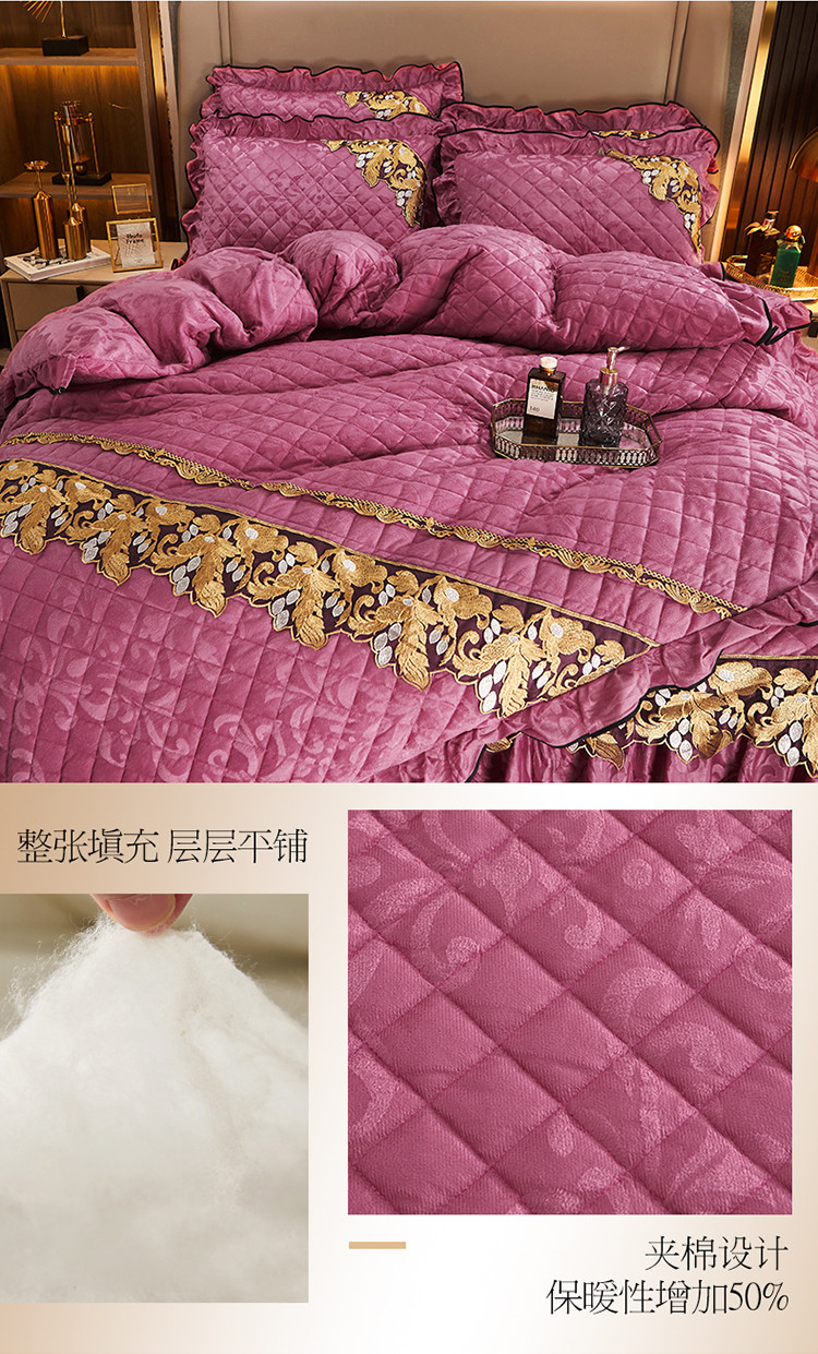 网红馆2025新款天鹅绒夹棉床裙四件套 浅忆拾光-胭脂粉