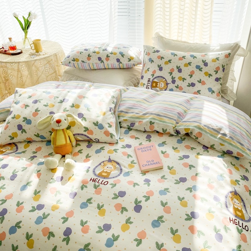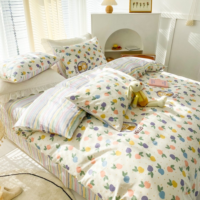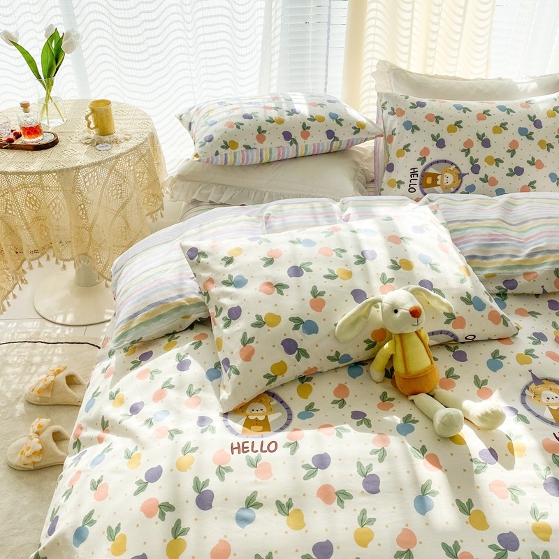 (总)优彩 2025新款全棉40支水洗棉水果刺绣系列四件套,蜜桃,葡萄