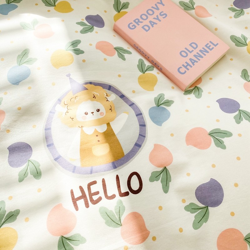 商品名称:优彩2022新款全棉13372印花单被套 彩色桃桃