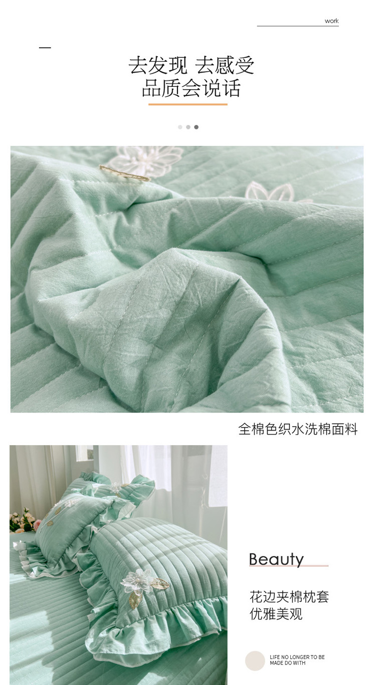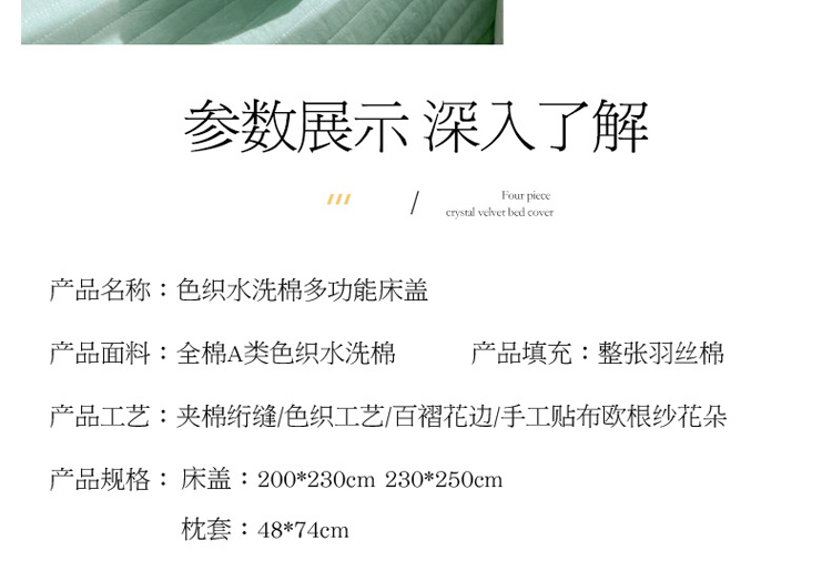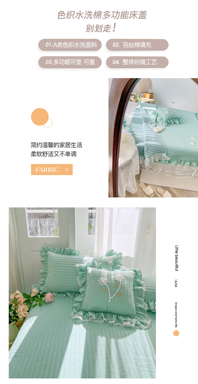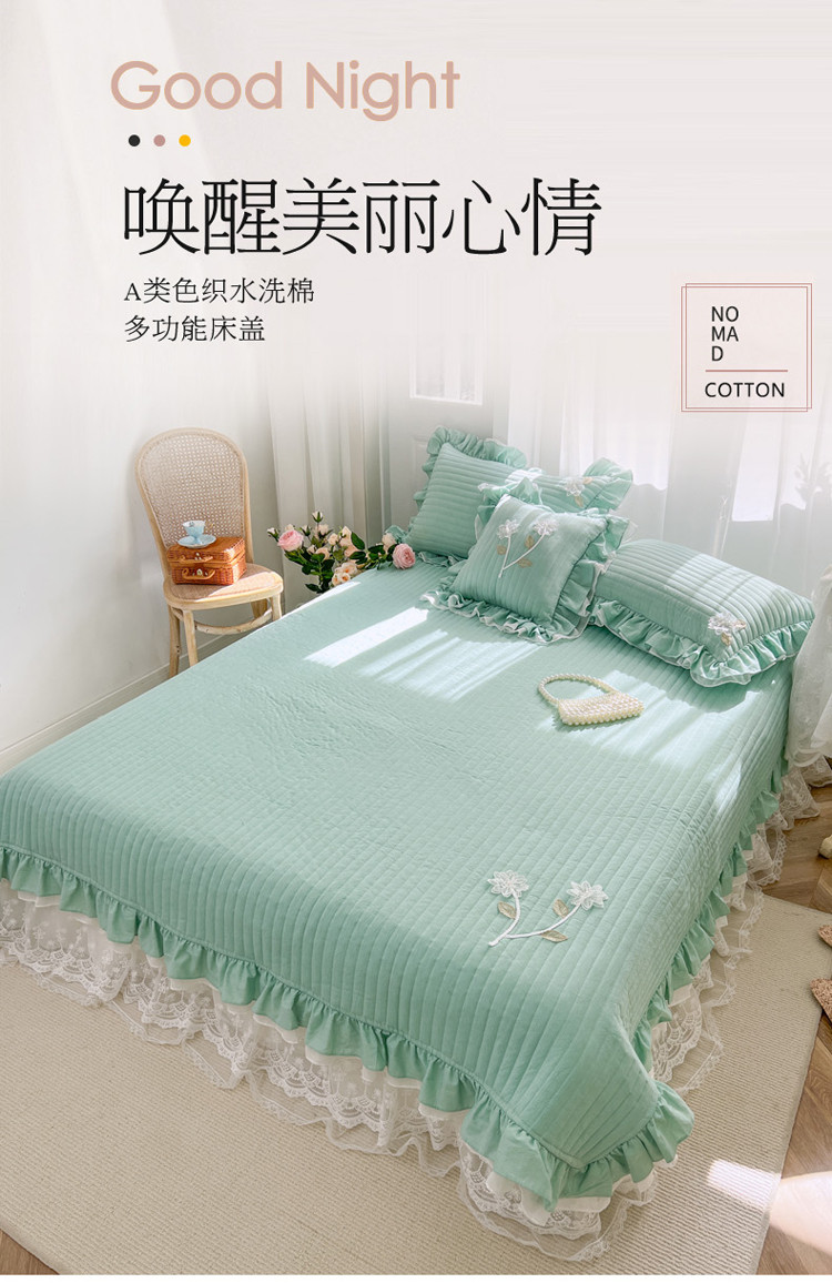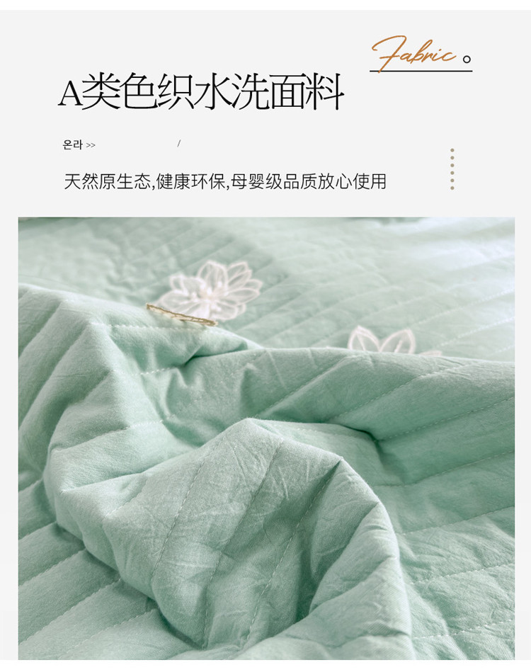 商品名称:菊上家纺 2022新款手工花色织水洗棉多功能床盖 绿