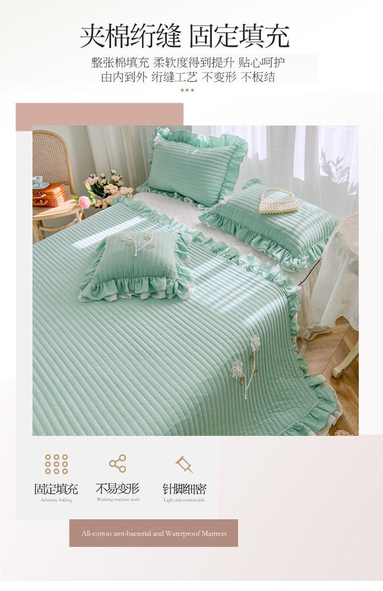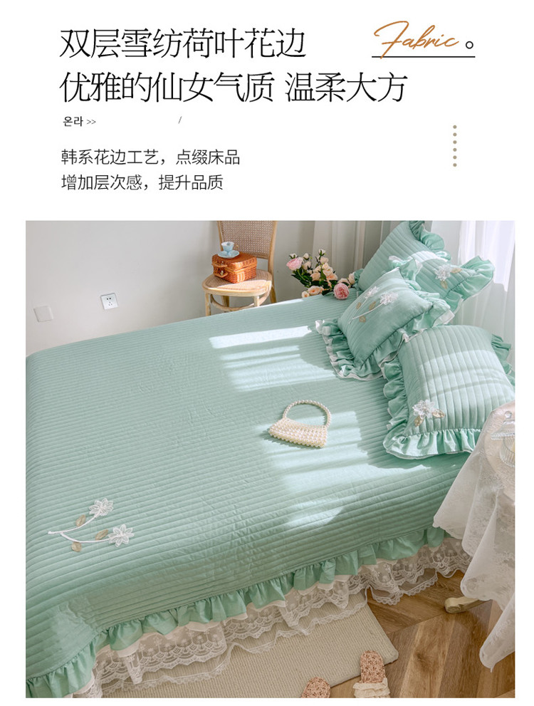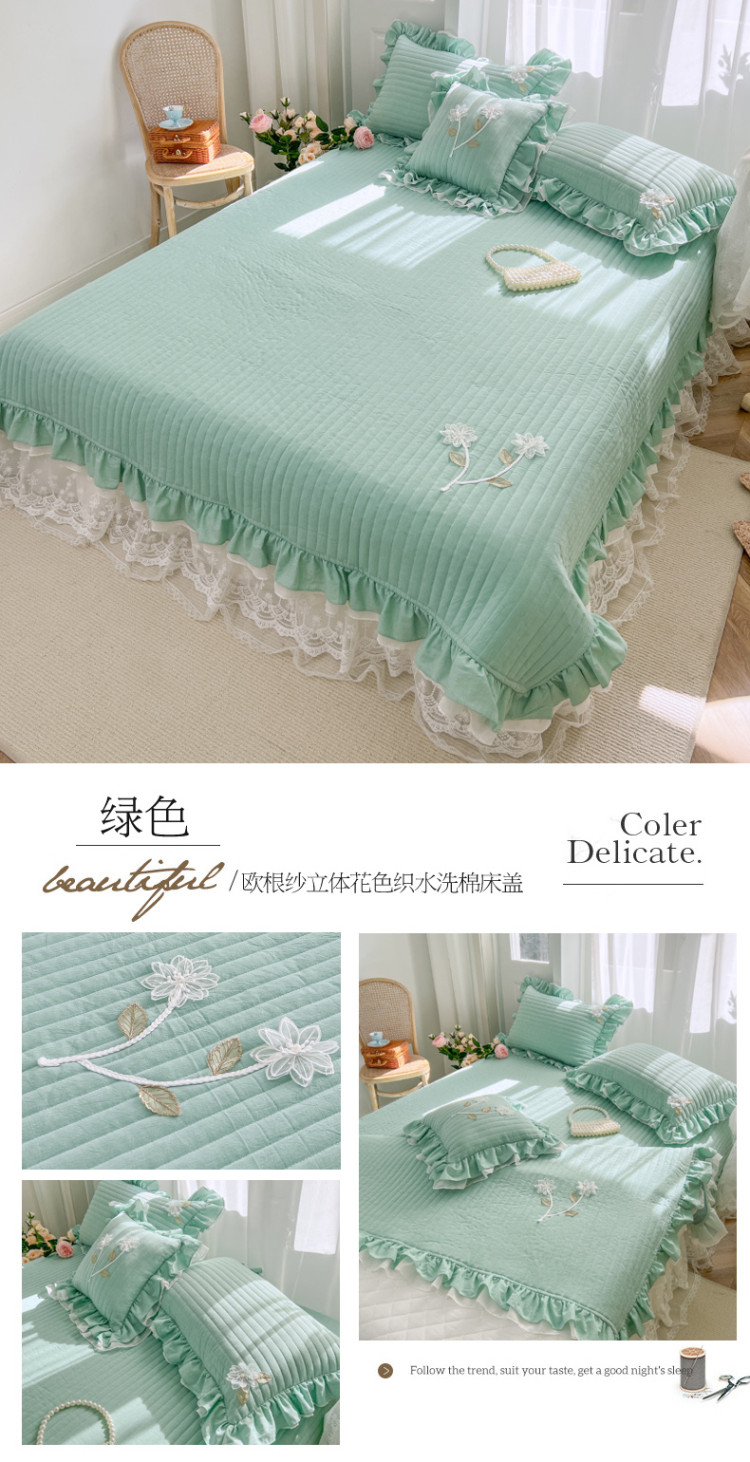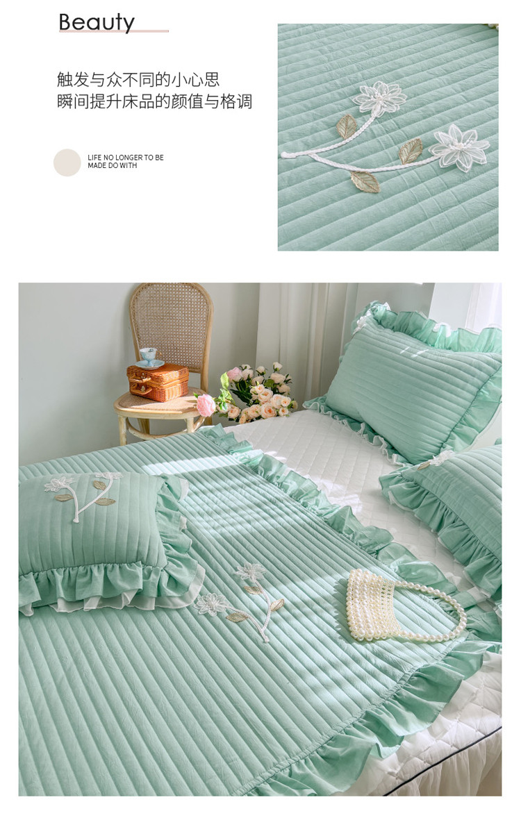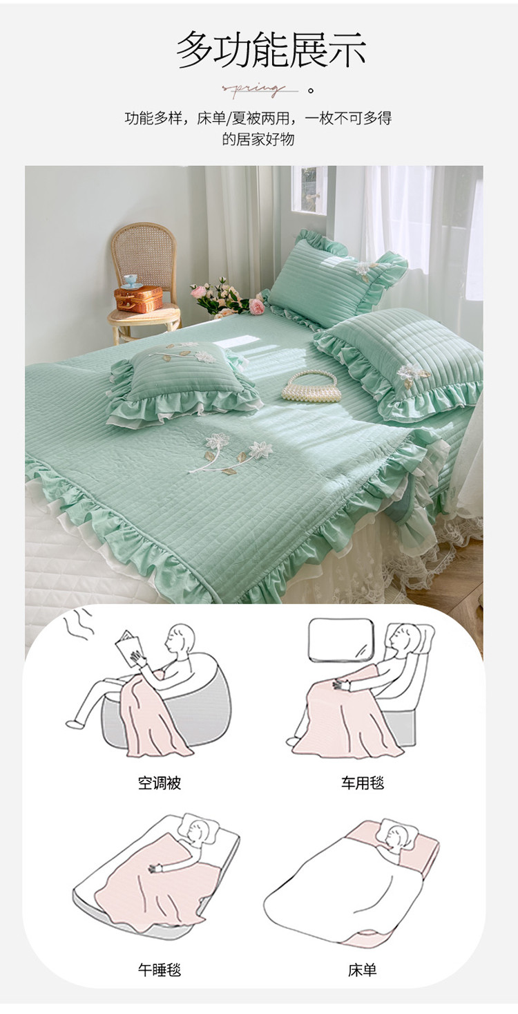 商品名称:菊上家纺 2022新款手工花色织水洗棉多功能床盖 绿
