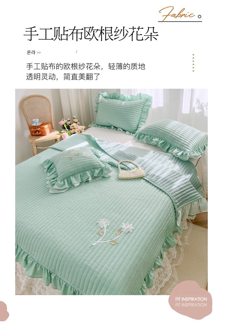 菊上家纺 2022新款手工花色织水洗棉多功能床盖 绿