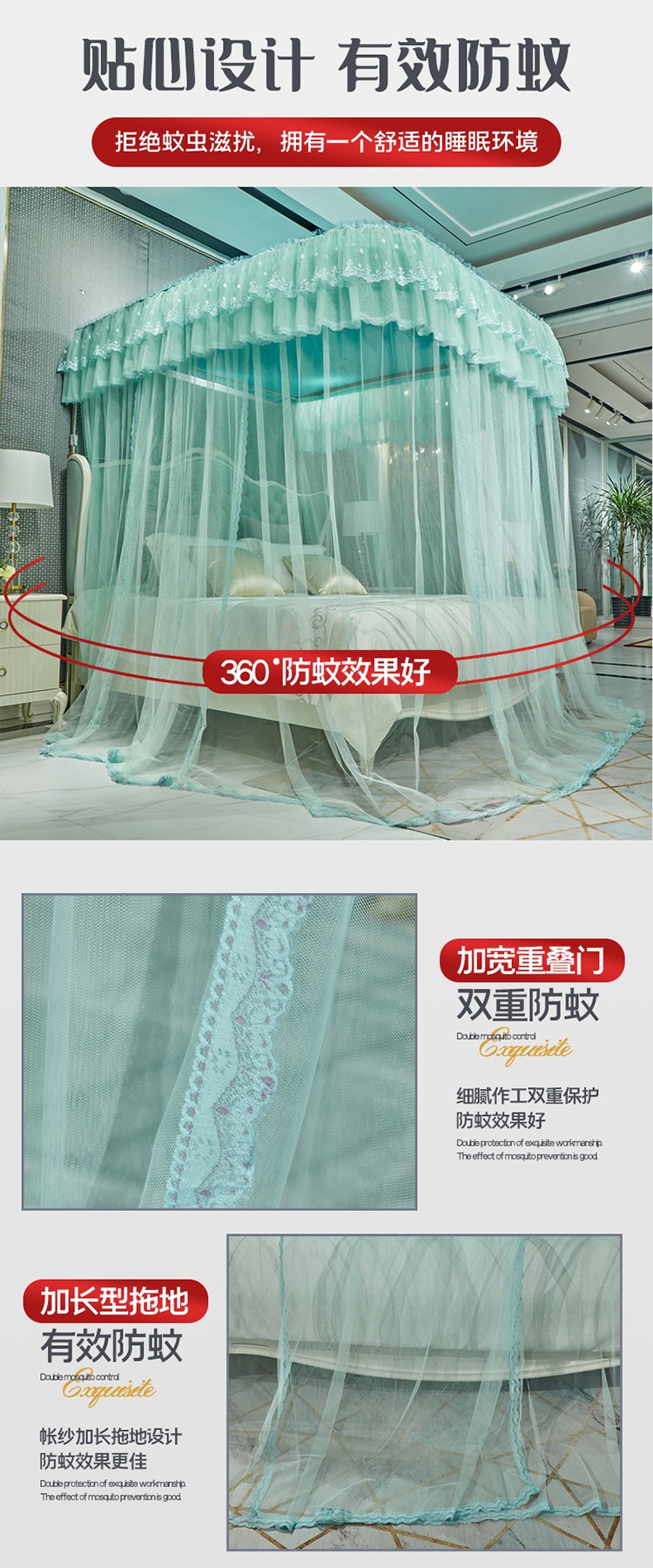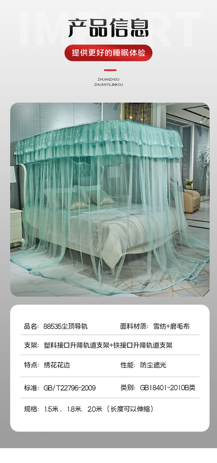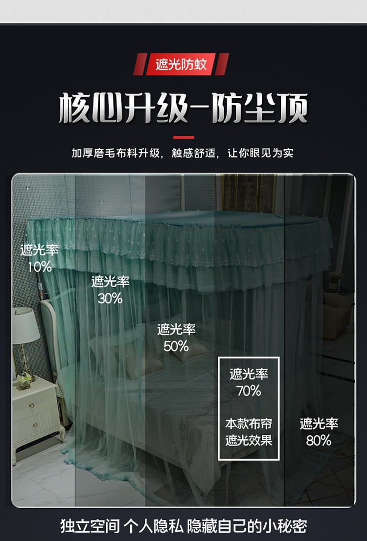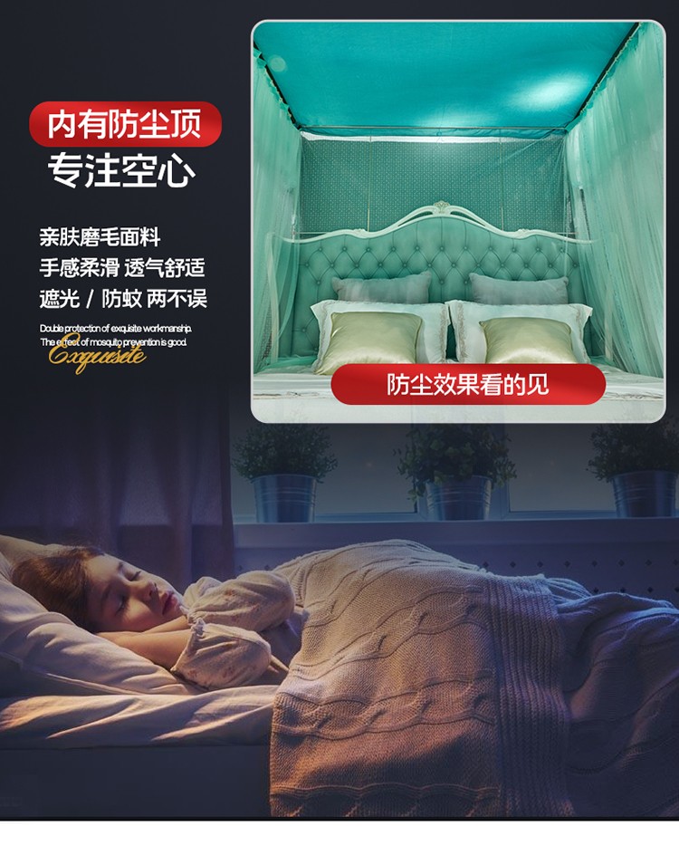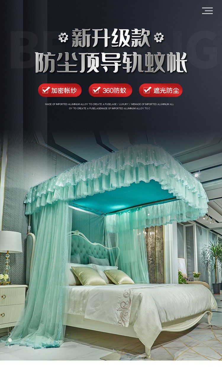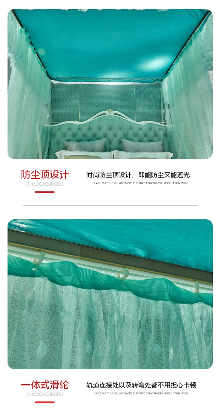 当前位置: 91家纺网 > 商品网购 > 床上用品 > 蚊帐 > 导轨蚊帐 > 夏彩新款防尘遮光顶加密加厚防蚊轨道睡帐88535水绿