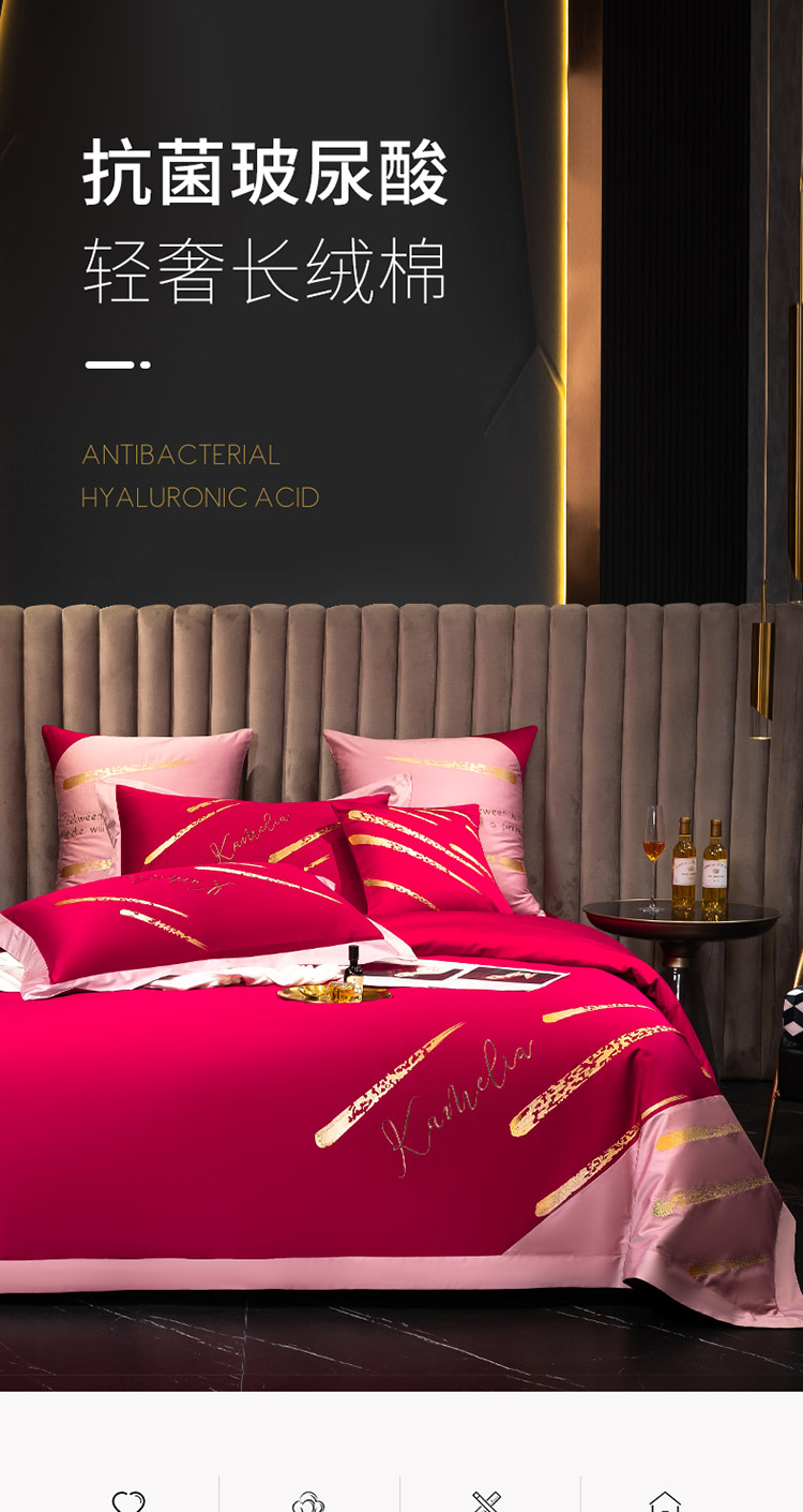 铭动 2023新款流星雨玻尿酸抗菌长绒棉四件套 流星雨-紫嫣红