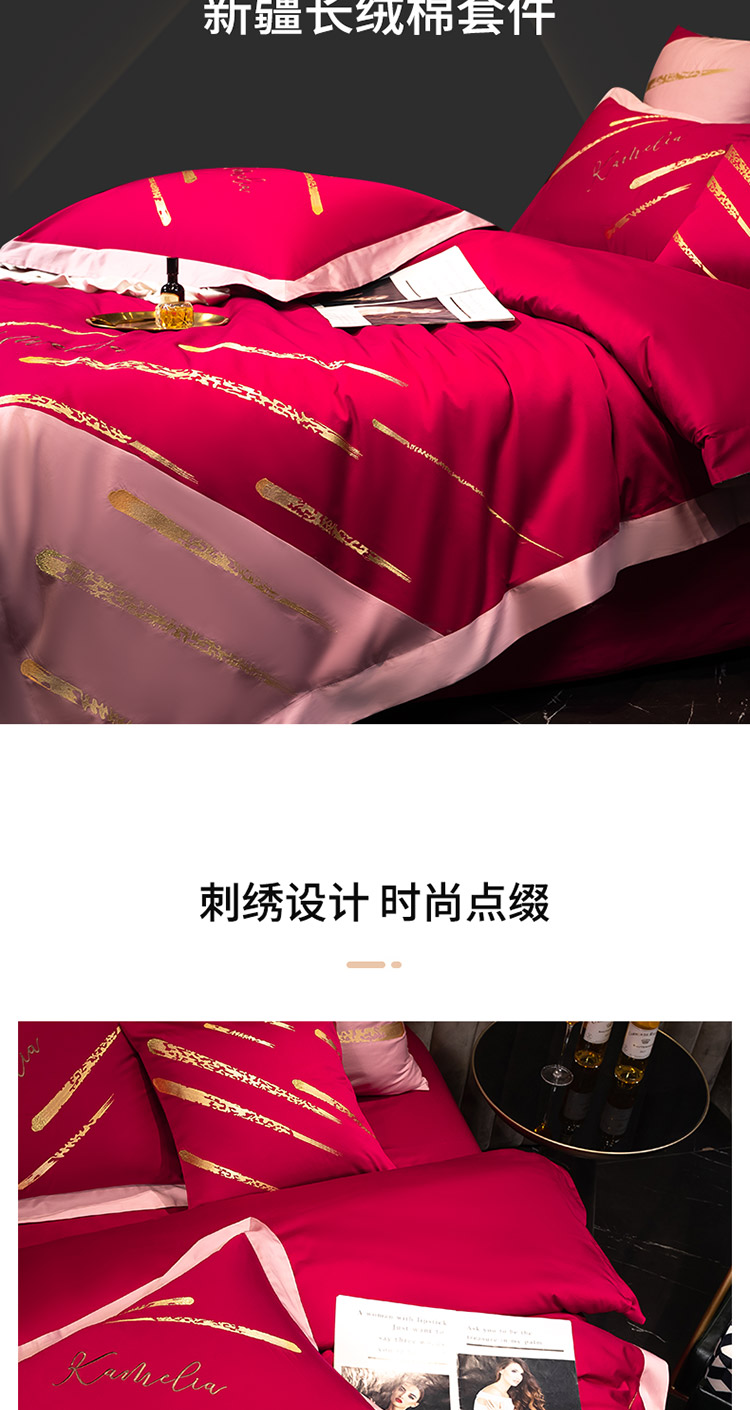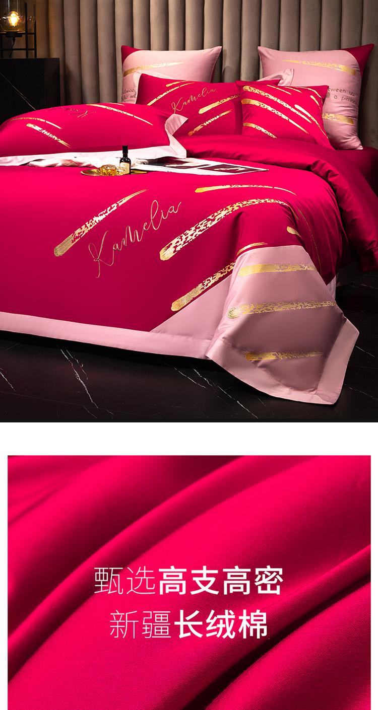 (总)铭动2023新款高克重牛奶绒刺绣款婚庆大红色新婚四件套,花嫁,倾心