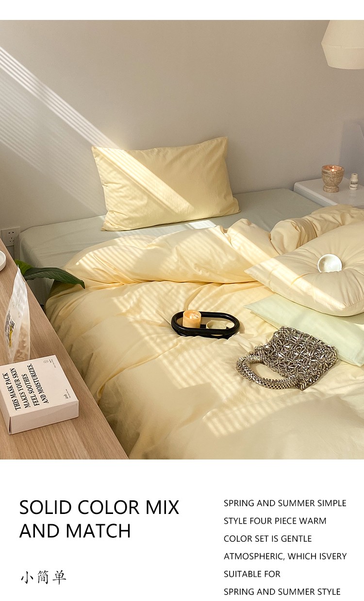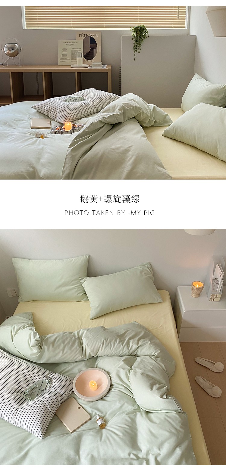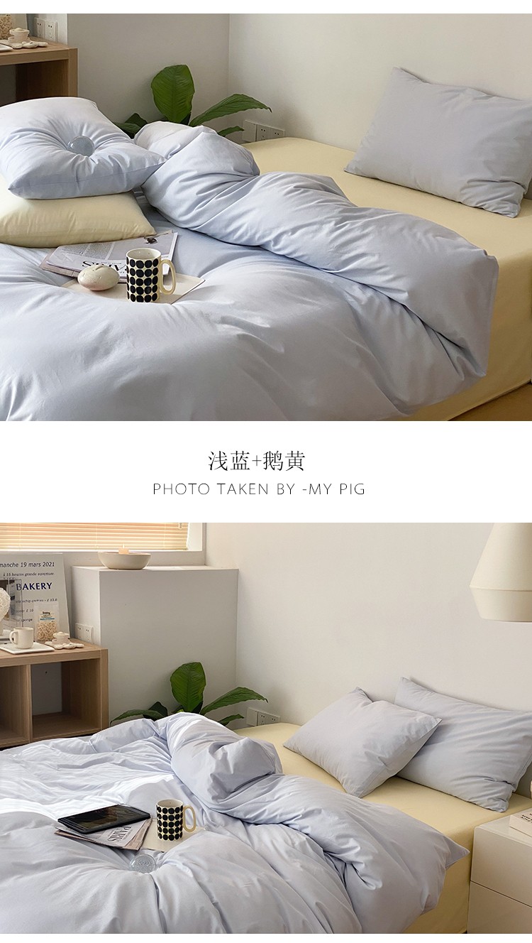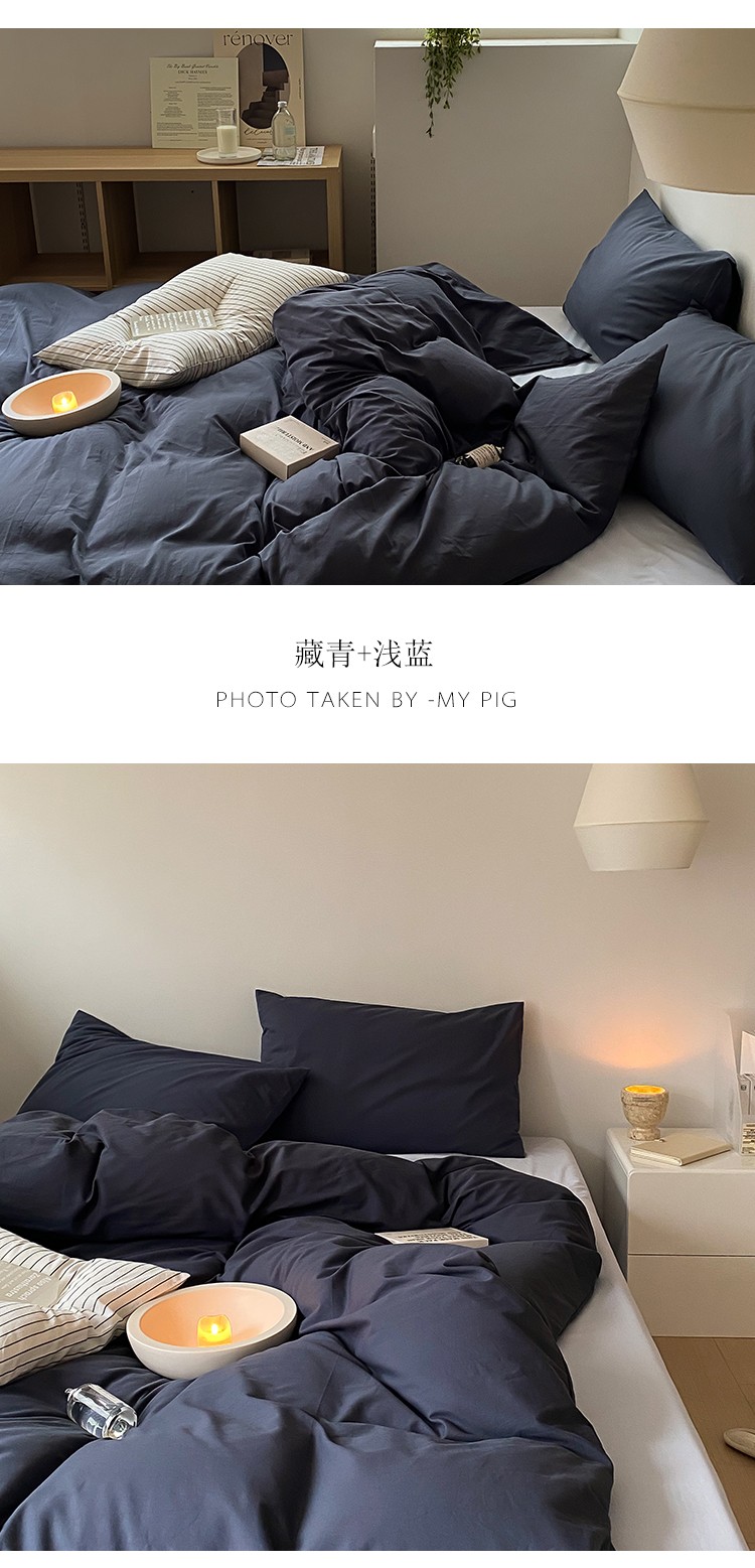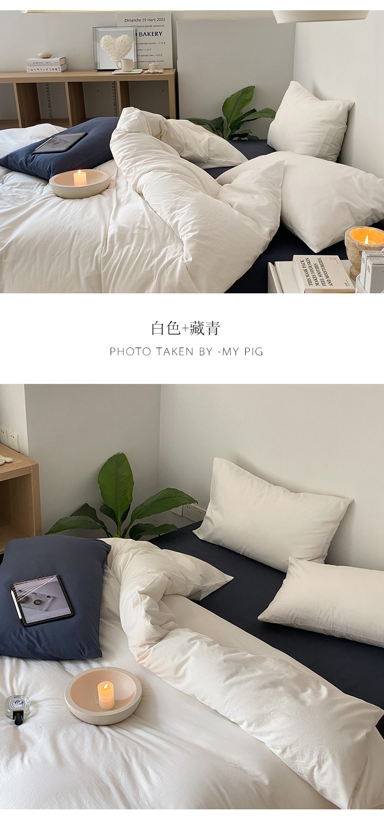 北欧风ins纯棉水洗棉床四件套全棉简约被套床单上三件套床笠,白色+藏青,藏青+浅蓝,鹅黄+螺旋藻绿,鹅黄+牛油果,螺旋藻绿+鹅黄,千夏紫+水貂灰,千夏紫+薇薇紫,薇薇紫+浅灰,浅蓝+鹅黄,浅蓝+白色,浅蓝+藏青